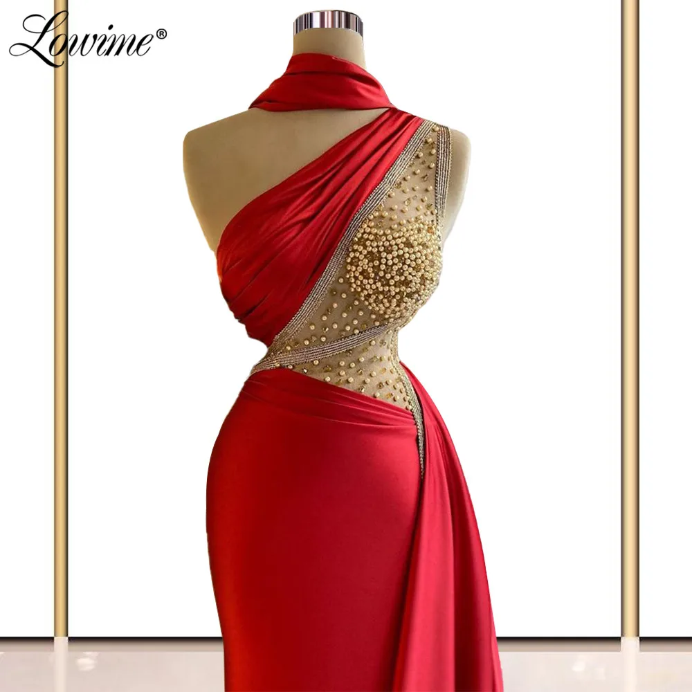 Женское вечернее платье Lowime, красное платье-Русалка с золотыми бусинами, для выпускного вечера, 2021