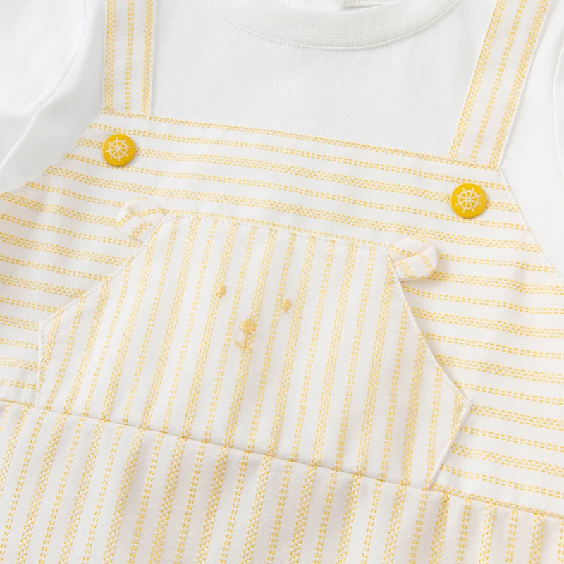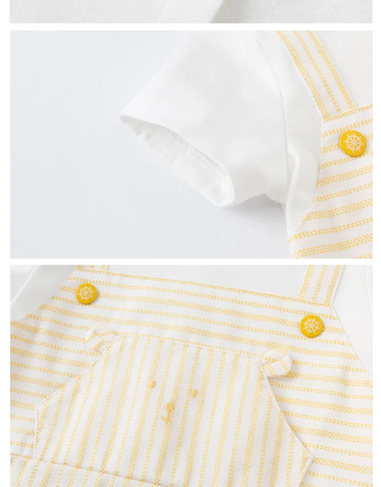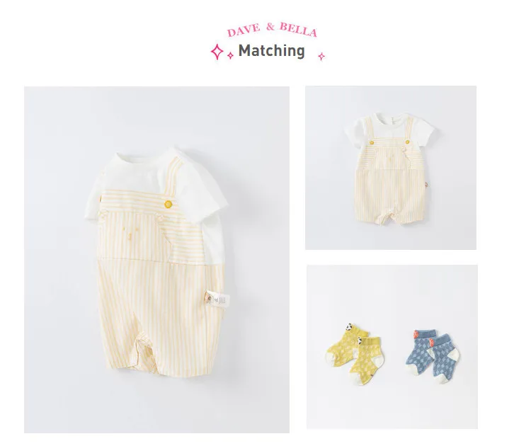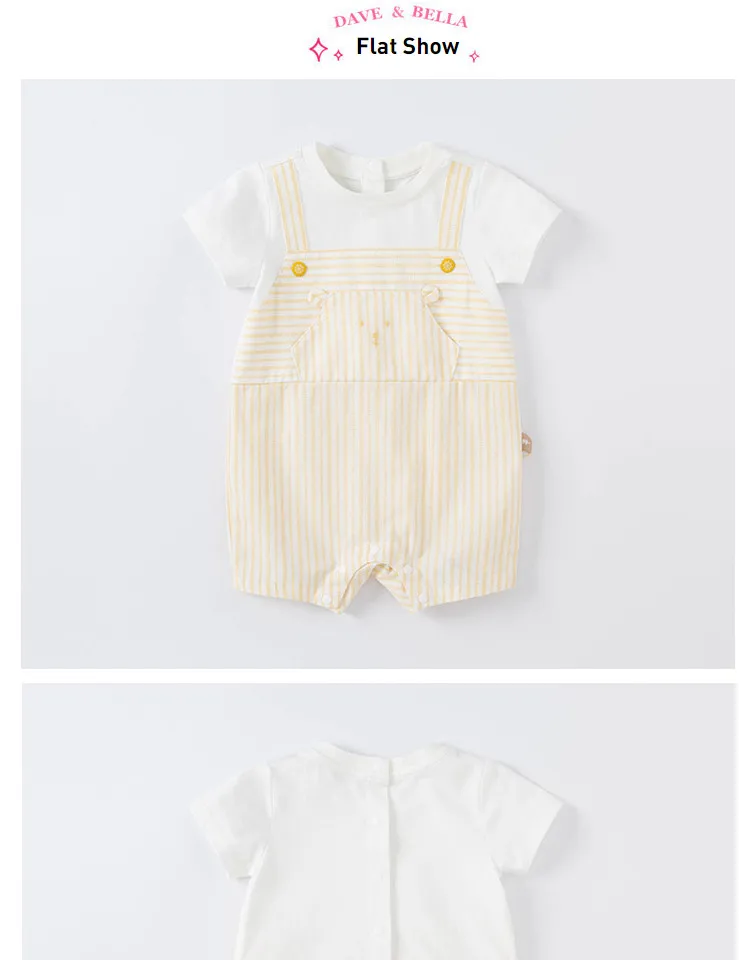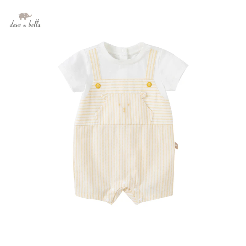 DBS16818 нижнее белье в стиле бренда dave bella Лето; Новинка; Модная одежда для маленьких мальчиков; Платье в стиле пэчворк в полоску; Костюмы для младенцев; Одежда для малышей; Детский комбинезон; 1 шт.