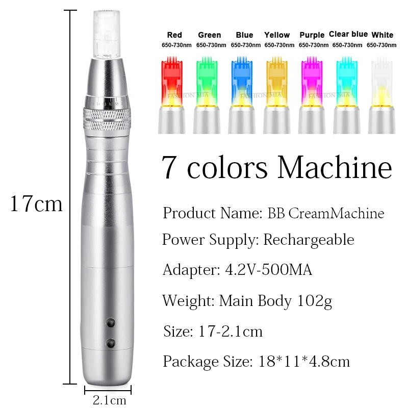 Нано-ручка-это портативная Автоматическая микро-7 цветная светодиодная BB-кремовая машинка. Используйте для BB-сыворотки, это нехирургическое лечение омоложения кожи, которое широко используется для омоложения кожи, повышения эластичности кожи, уменьшения морщин, уменьшения шрамов от акне, Уменьшения Растяжек, стимуляция роста волос, отбеливание и введение активных ингредиентов. Это устройство помогает косметике проникать внутрь и впитываться стимулируя кожу.