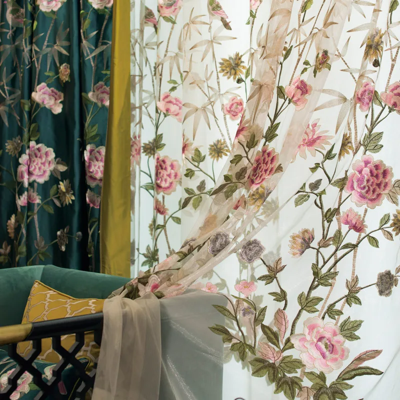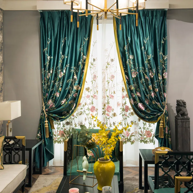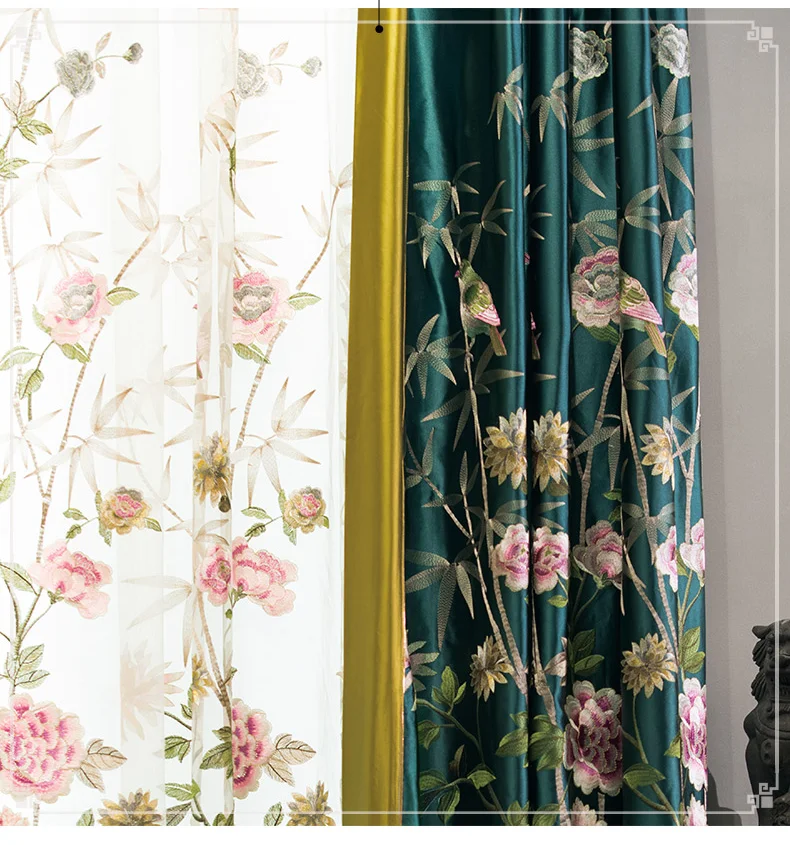Высококачественные китайские искусственные шелковые вышитые шторы, роскошные вышитые шторы для гостиной, спальни, балконные занавески