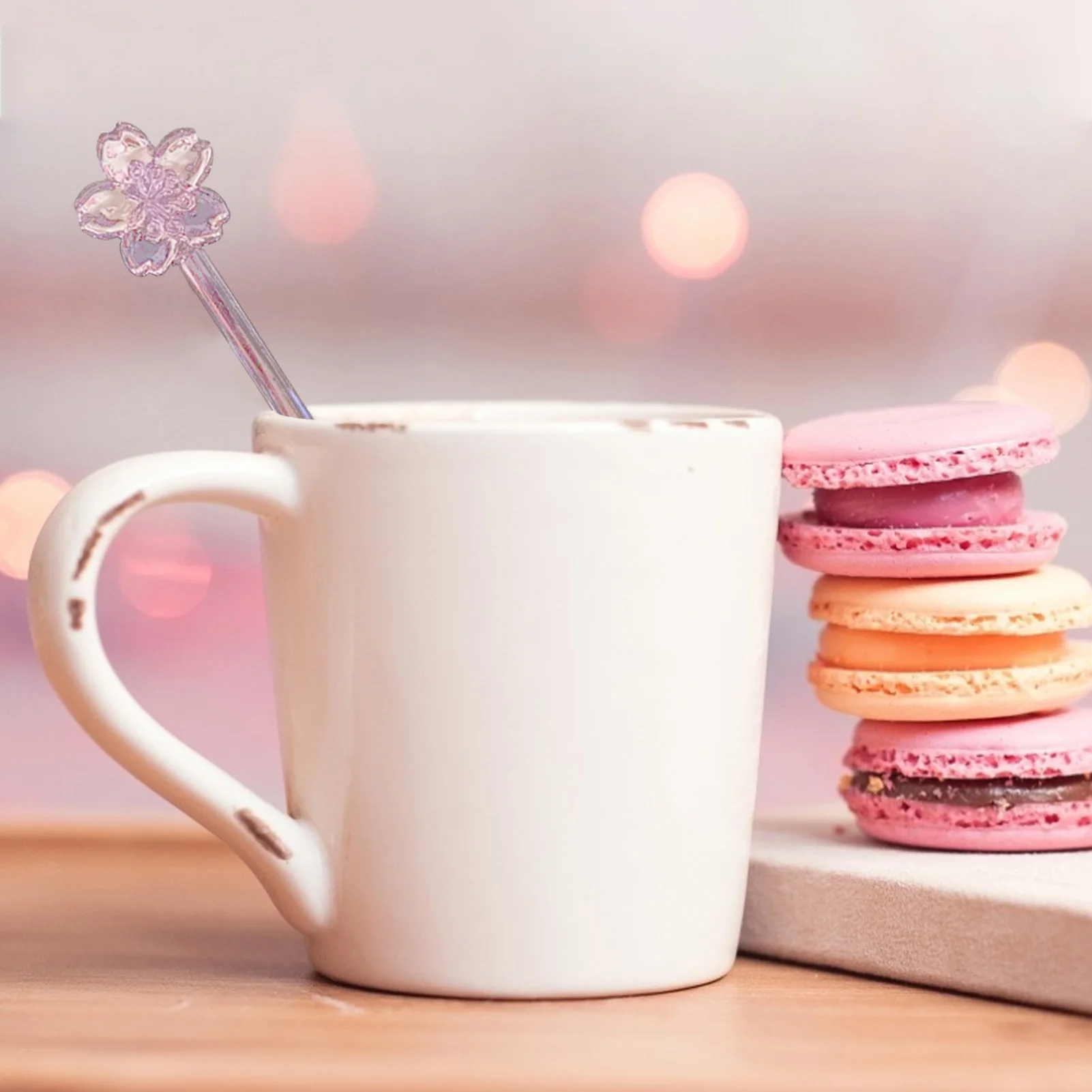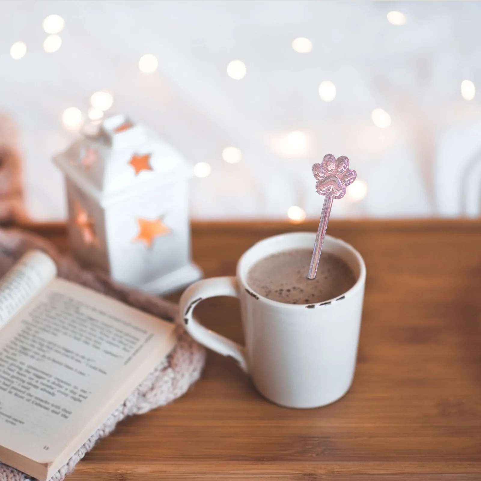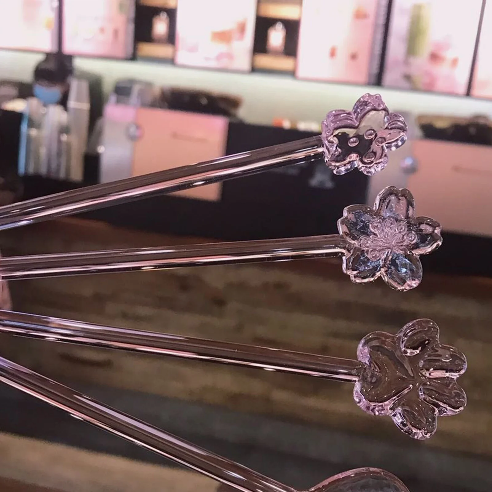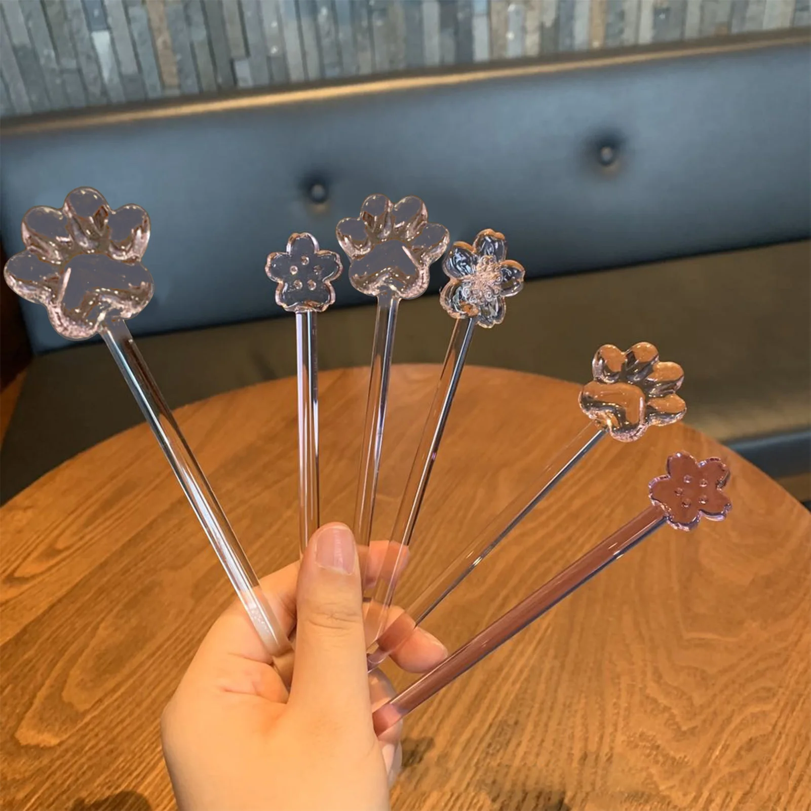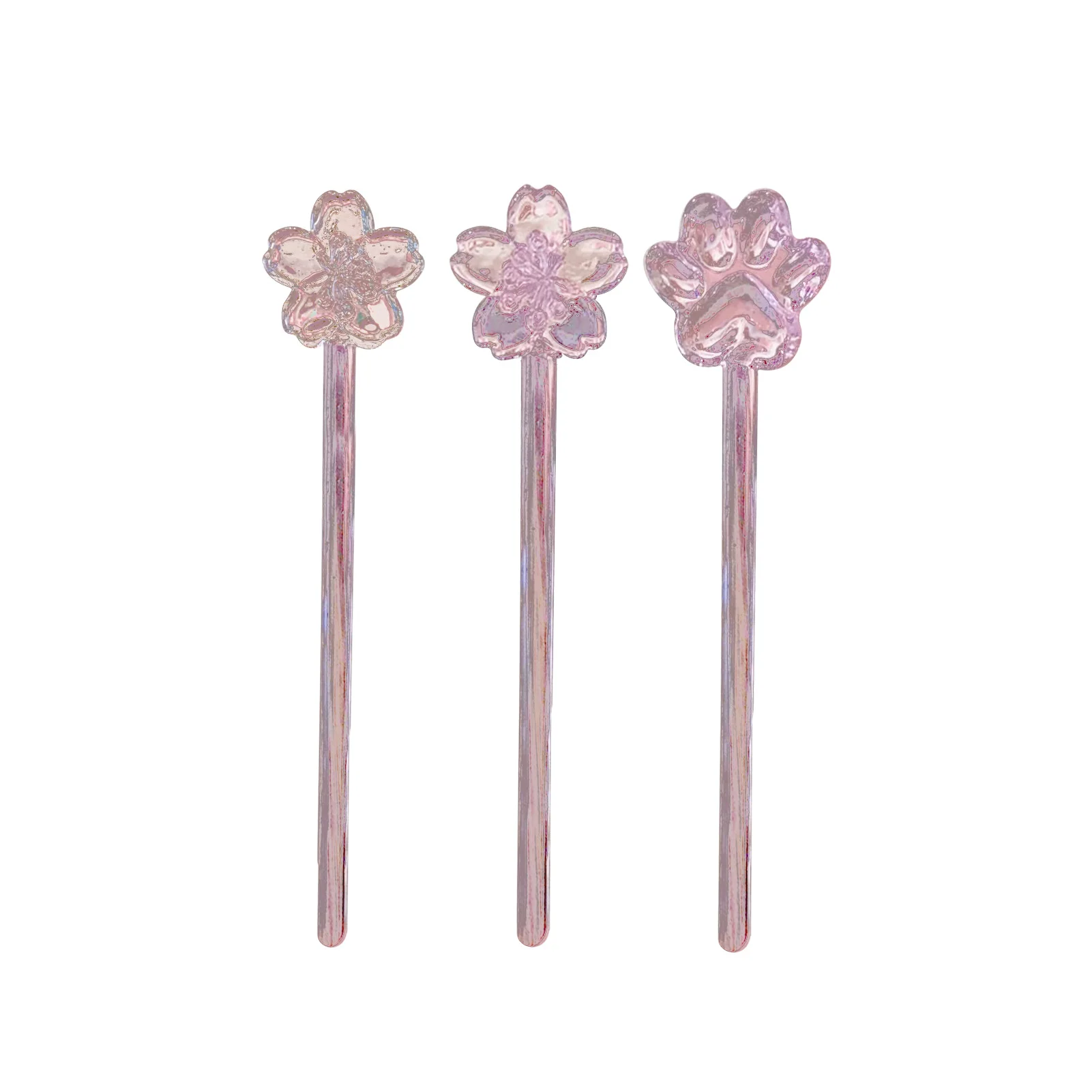 Оптовая продажа, прозрачная стеклянная перемешивающая палочка с цветком вишни, розовая дренажная палочка для кофе для девушек, милая кошачья ложка для молока и чая с когтями