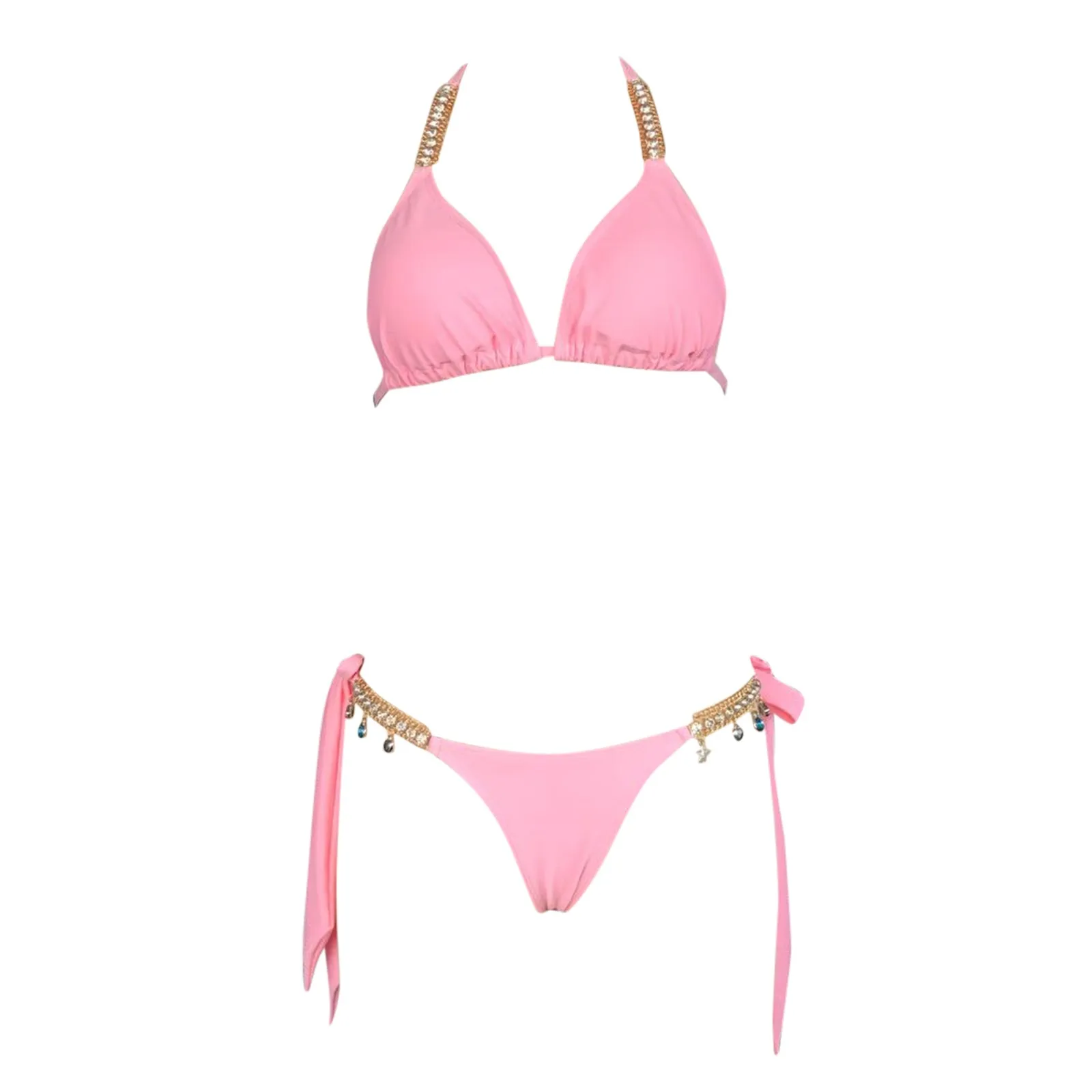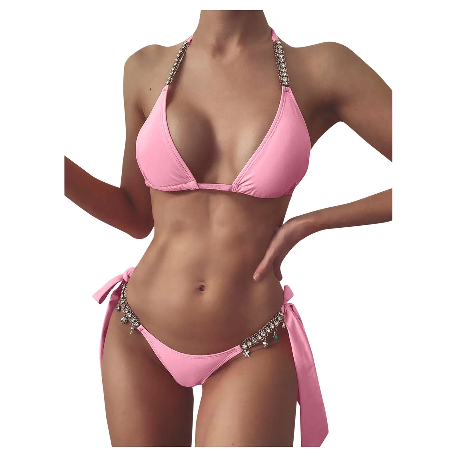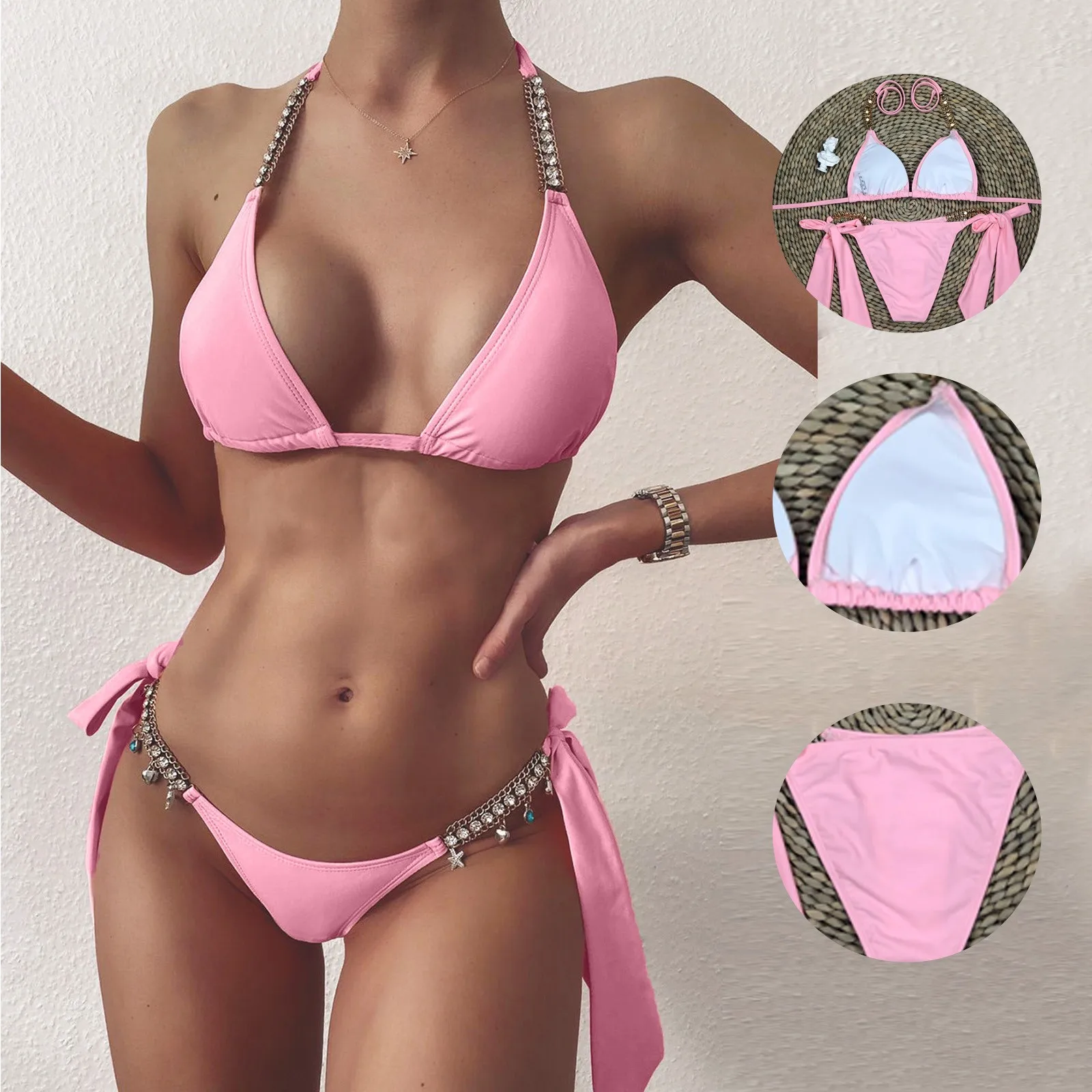 2021 пикантная обувь с украшением в виде кристаллов алмаза комплект бикини купальники для женщин купальник цепи повязки, набор бикини, женский купальник, купальники с эффектом пуш-ап Пляжная одежда #1G