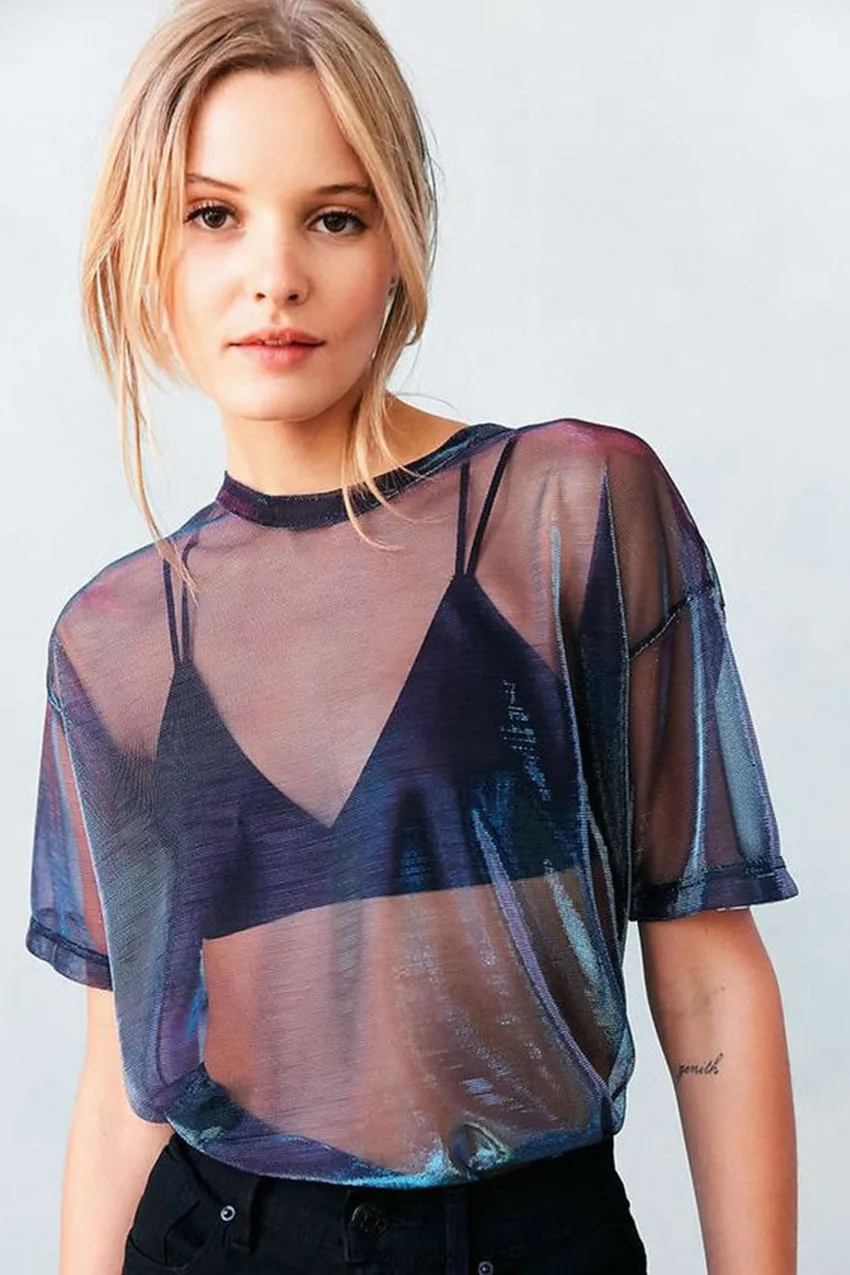 2021 Летняя Сексуальная Сетчатая футболка, прозрачные женские футбо...