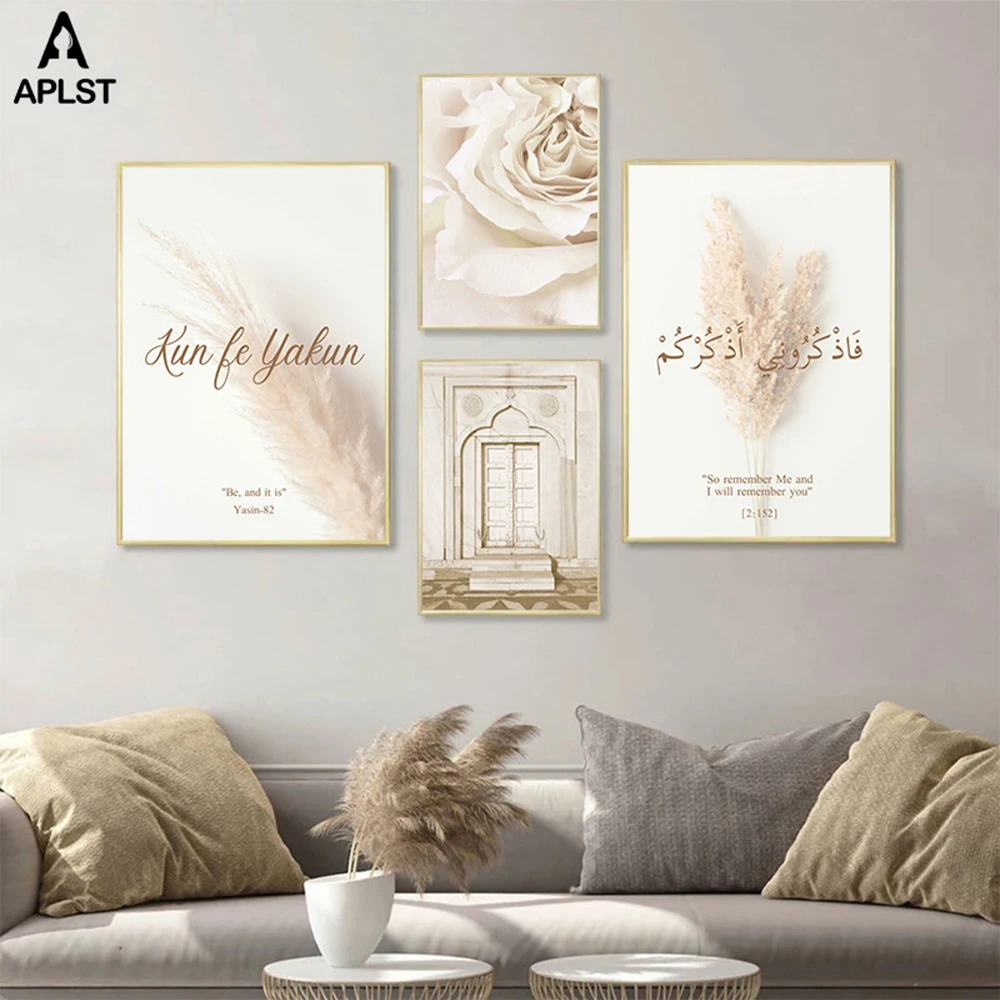 Мусульманская Мечеть марокканский Арка Архитектура картины на холсте плакат Исламской Коран с принтом с цитатой живописи бежевый картина украшение дома