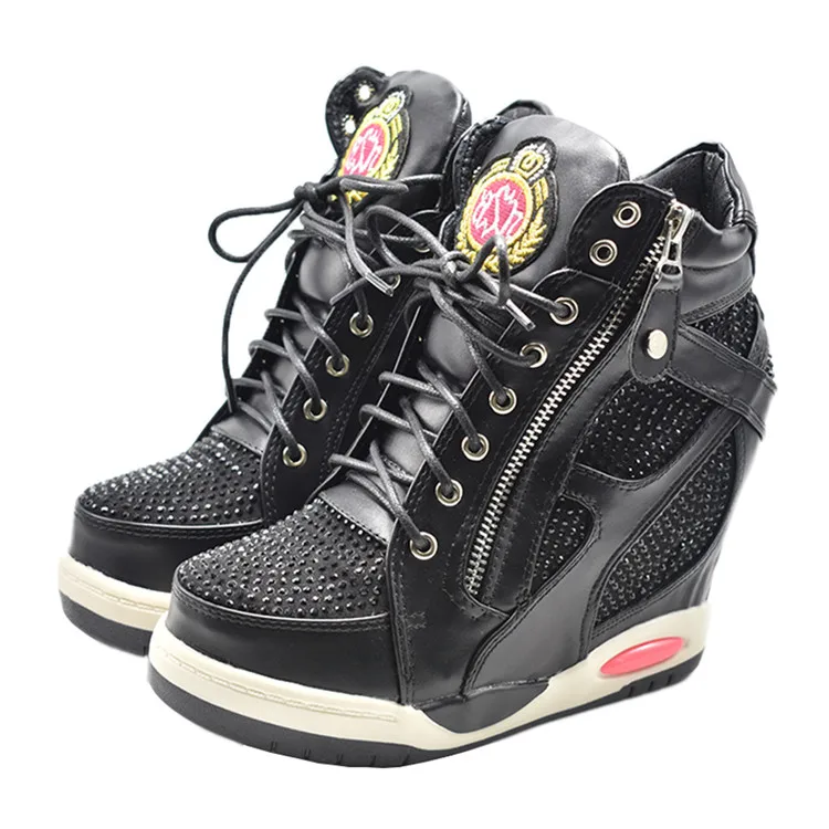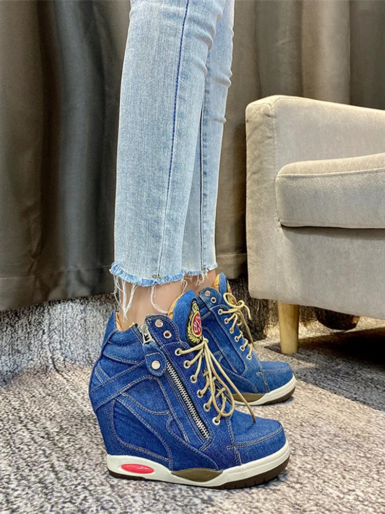 Весенне-осенние женские джинсовые кроссовки GXCMHBWJ на танкетке, боковая молния, шнуровка, Вулканизированная обувь, ботинки на толстой подошве и платформе со скрытым каблуком