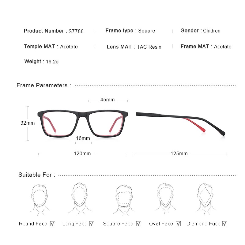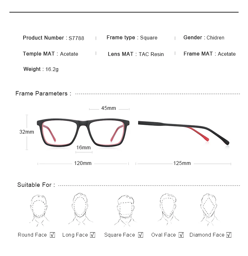 Очки детские квадратные с защитой от сисветильник света, ацетатные, S7788FLG