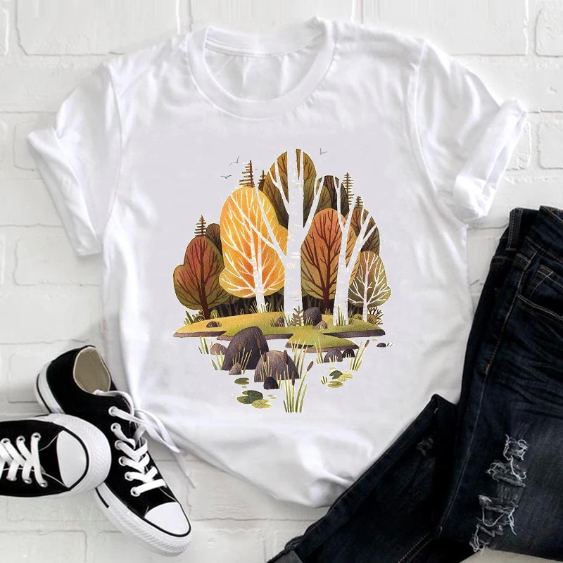 Женская футболка с принтом лесных перьев и птиц, с коротким рукавом...