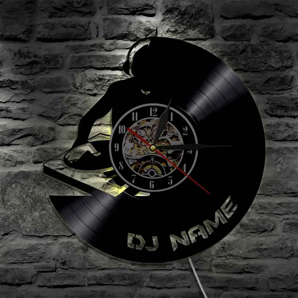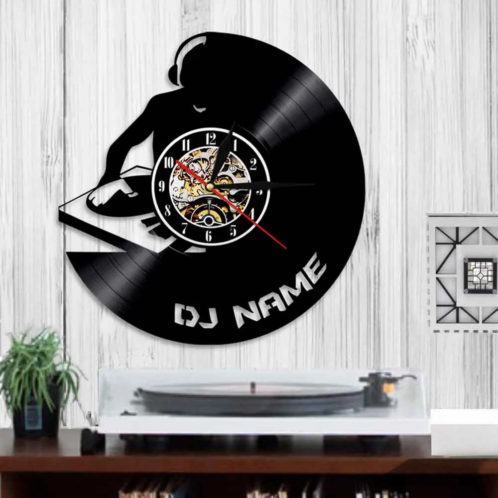 Настенные часы DJ Man Player, музыкальные настенные украшения для дома, настенные виниловые часы с именем под заказ, современные в стиле Рок н-ролл, подарок для диджея