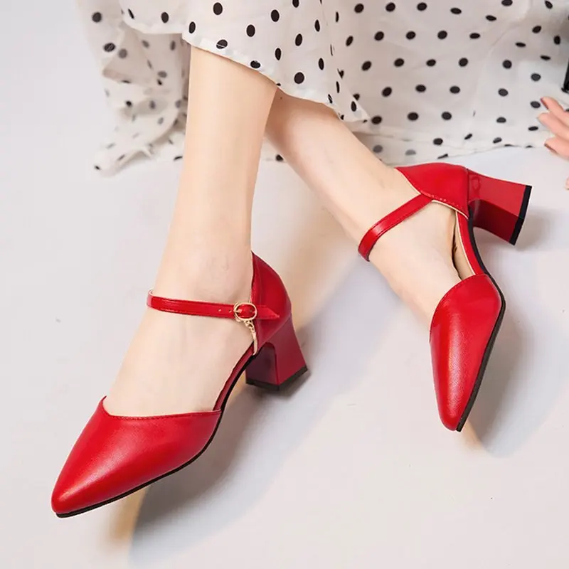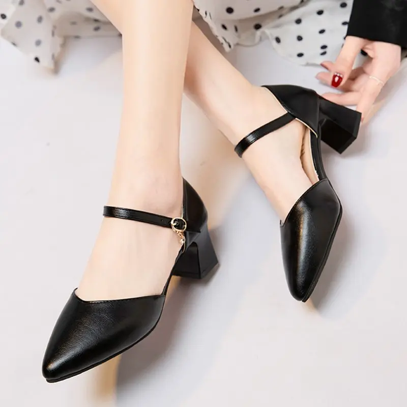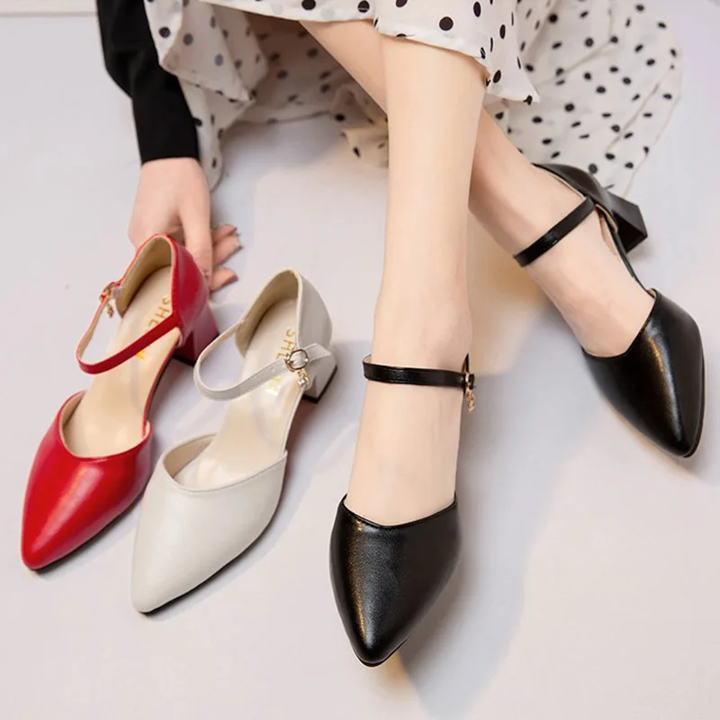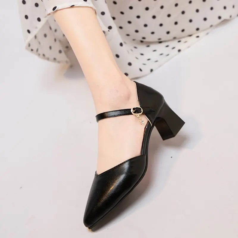 Женские туфли-лодочки с острым носком, на квадратном каблуке