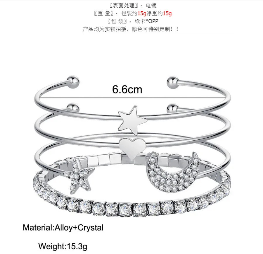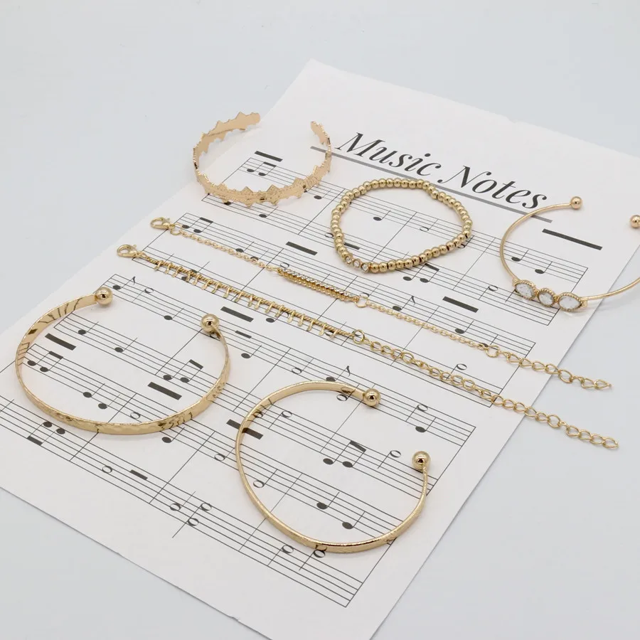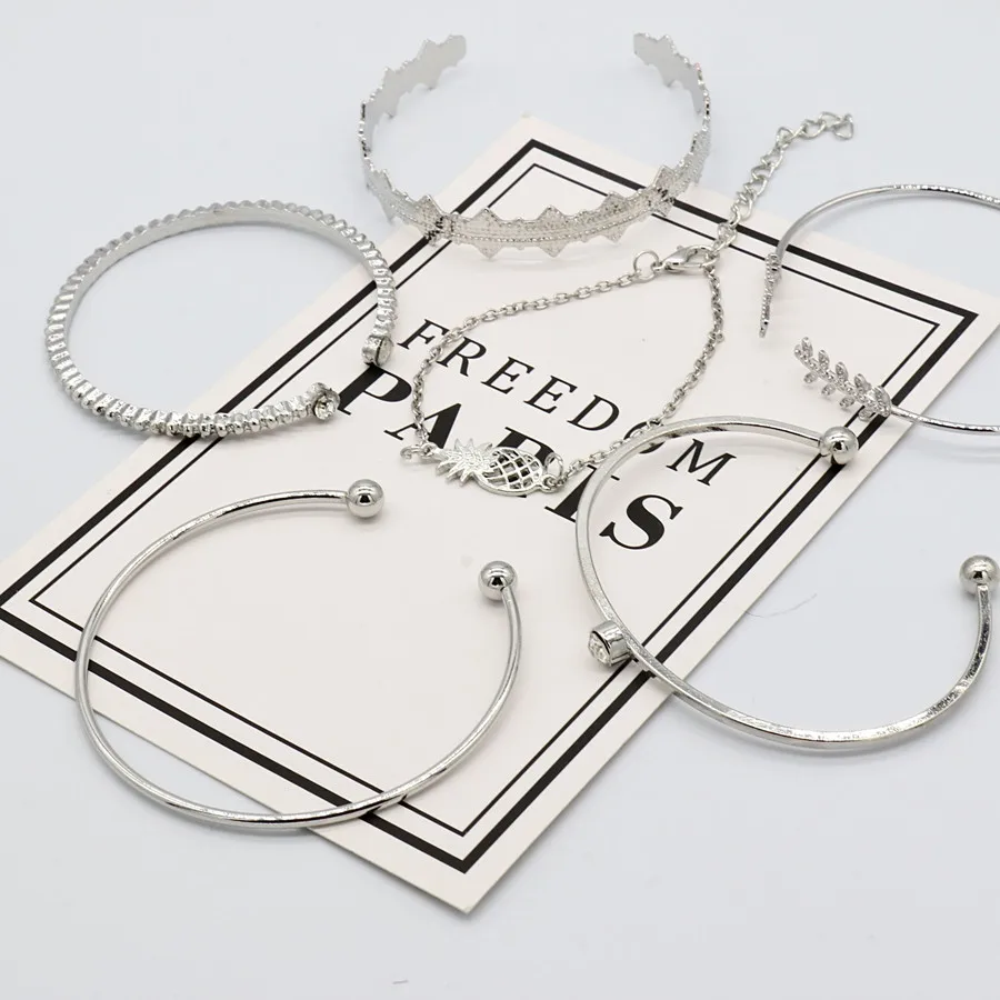Комплект из 6 открытых браслетов для женщин, в западном стиле, с ри...