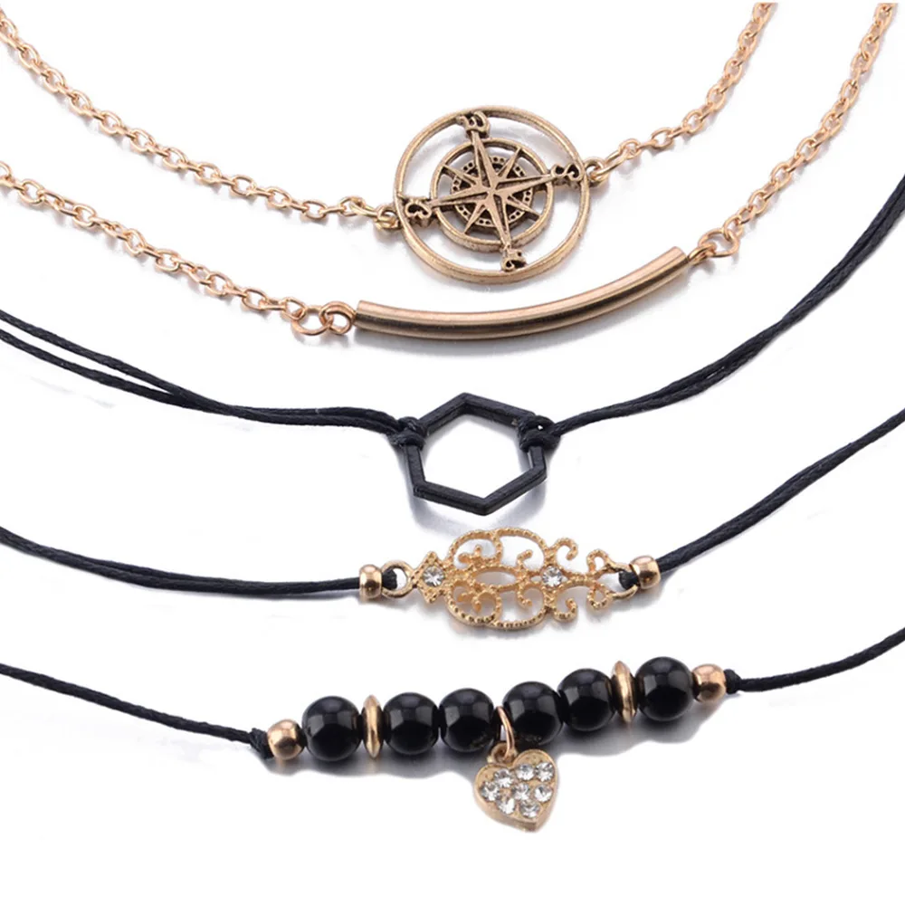 Новый богемный черный браслет-цепочка из веревки для женщин, украше...