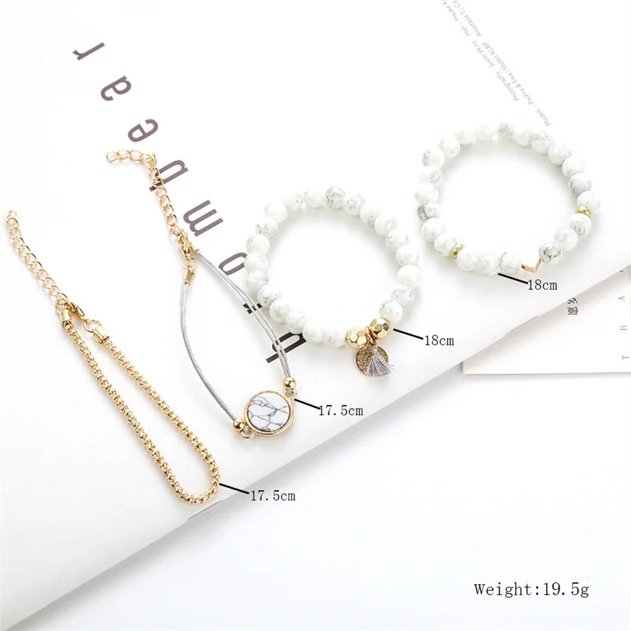 Набор браслетов 4 шт.компл., бусины из белого камня, золотистые акс...