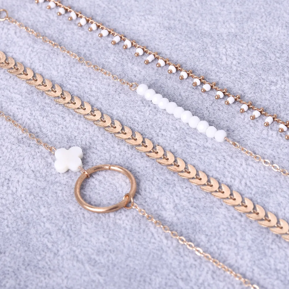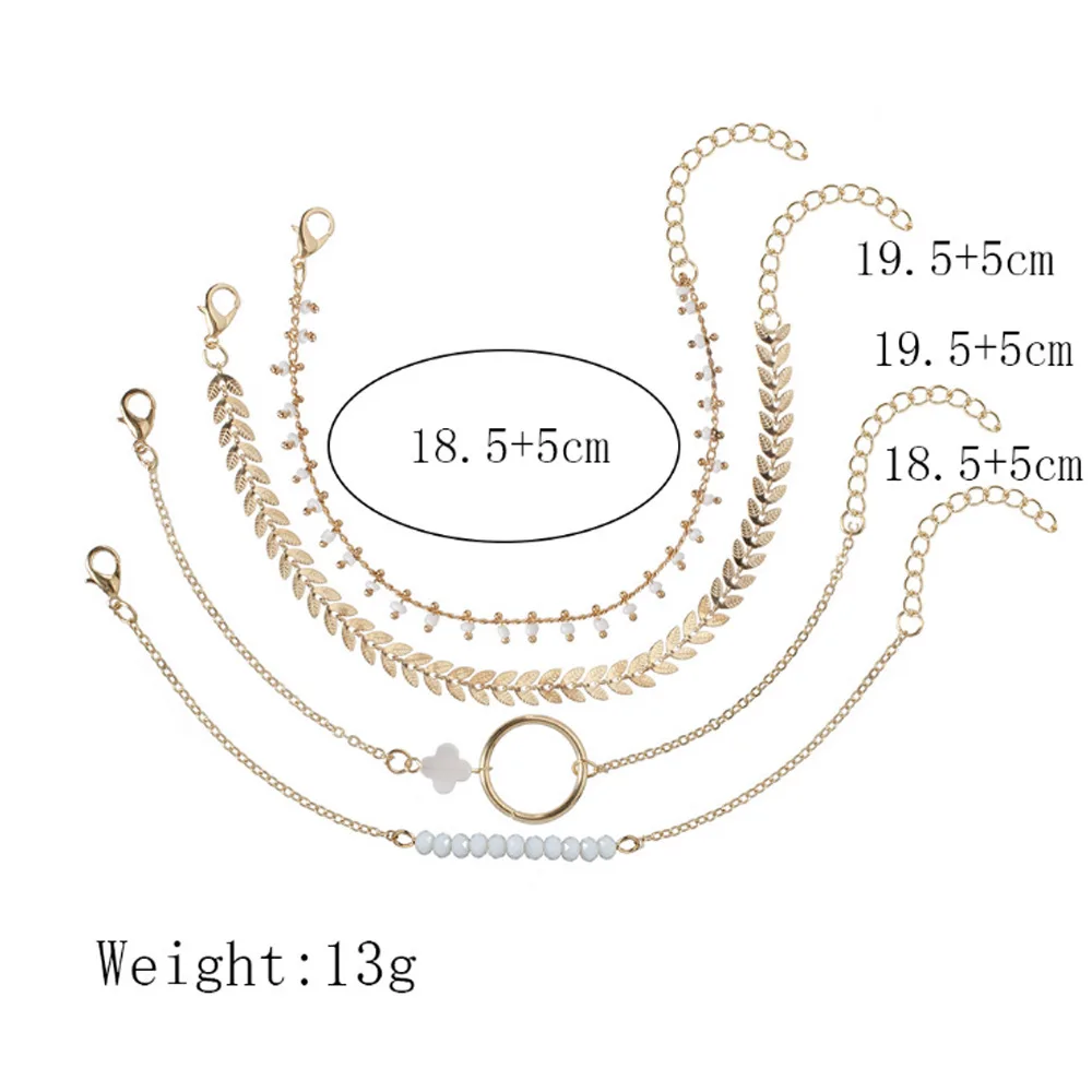 4 шт.компл. набор женских браслетов из цепочек с бусинами в богемно...