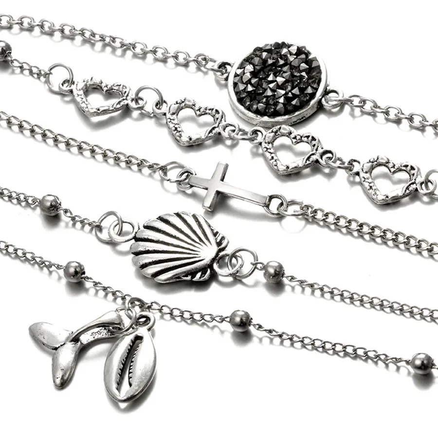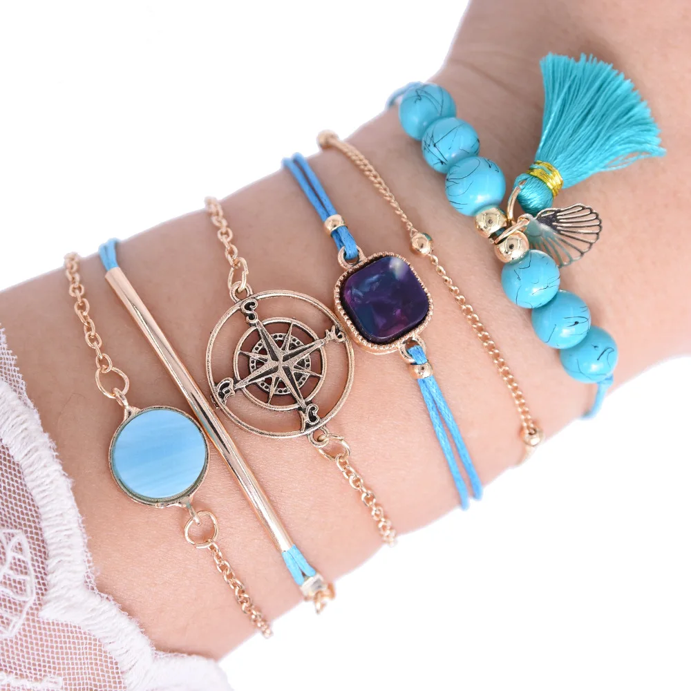 5 шт.компл. богемный Комплект браслетов с подвесками в виде ракушек...