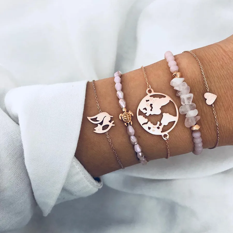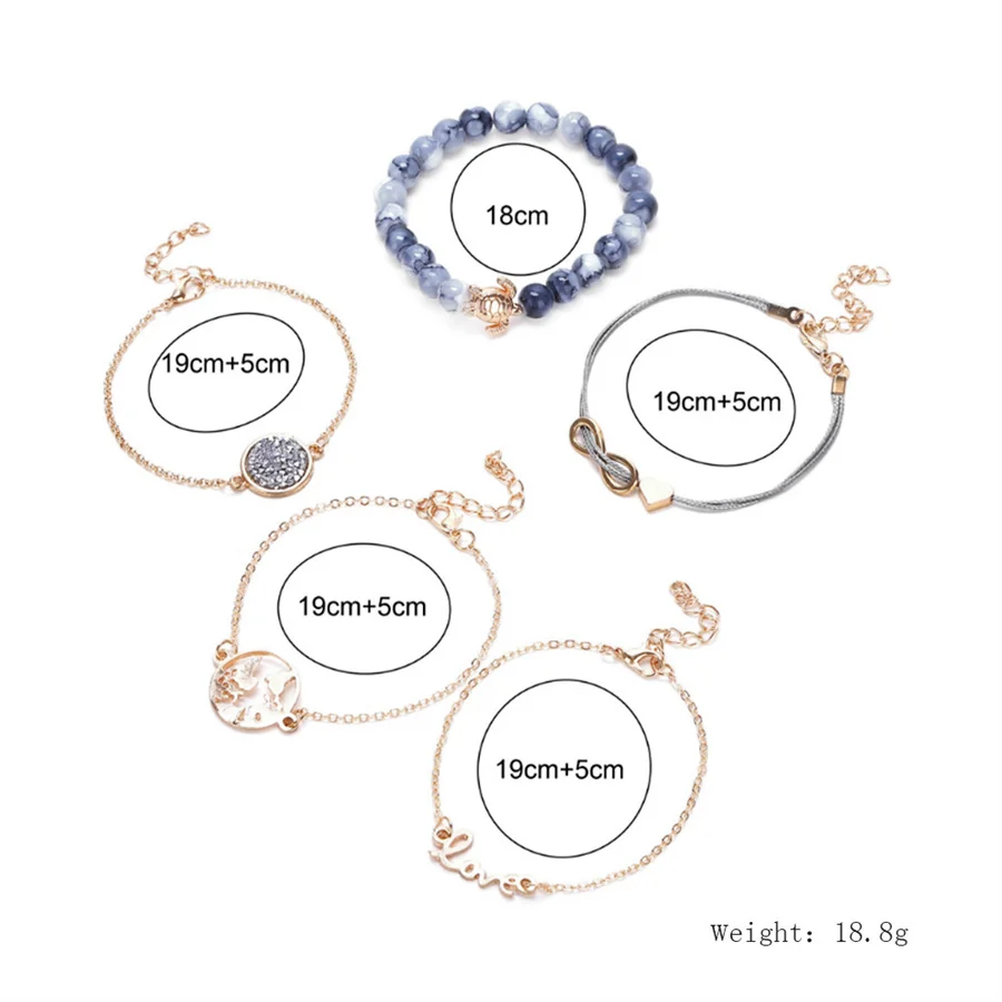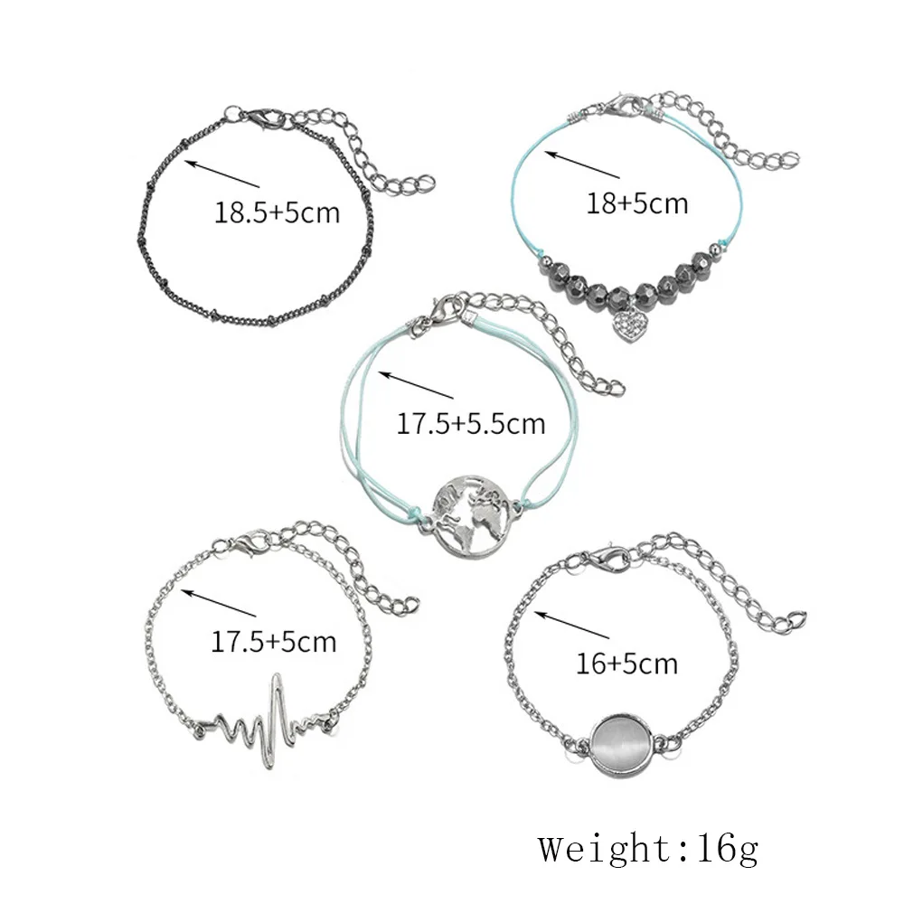Браслет женский в стиле бохо, 21 стиль, 5 шт. в наборе, цепочка с ш...