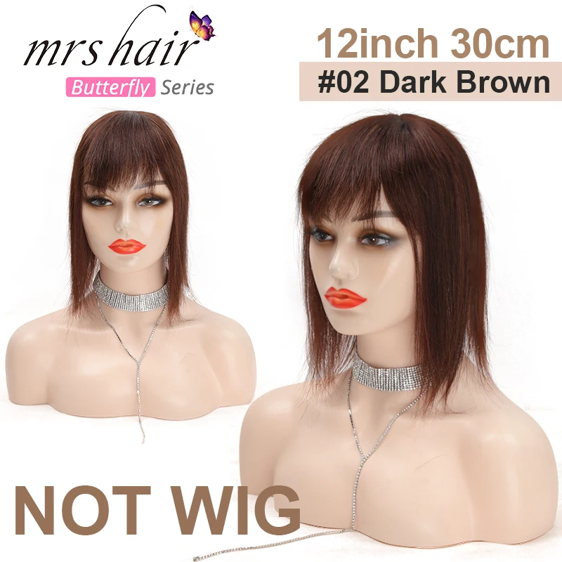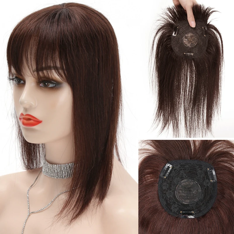 Топперы MRHSAIR из натуральных волос для женщин, темно-коричневые, 12x12 дюймов, прямые волосы для женщин, 2, 6-14 дюймов, покрывают лысую кожу головы с челкой