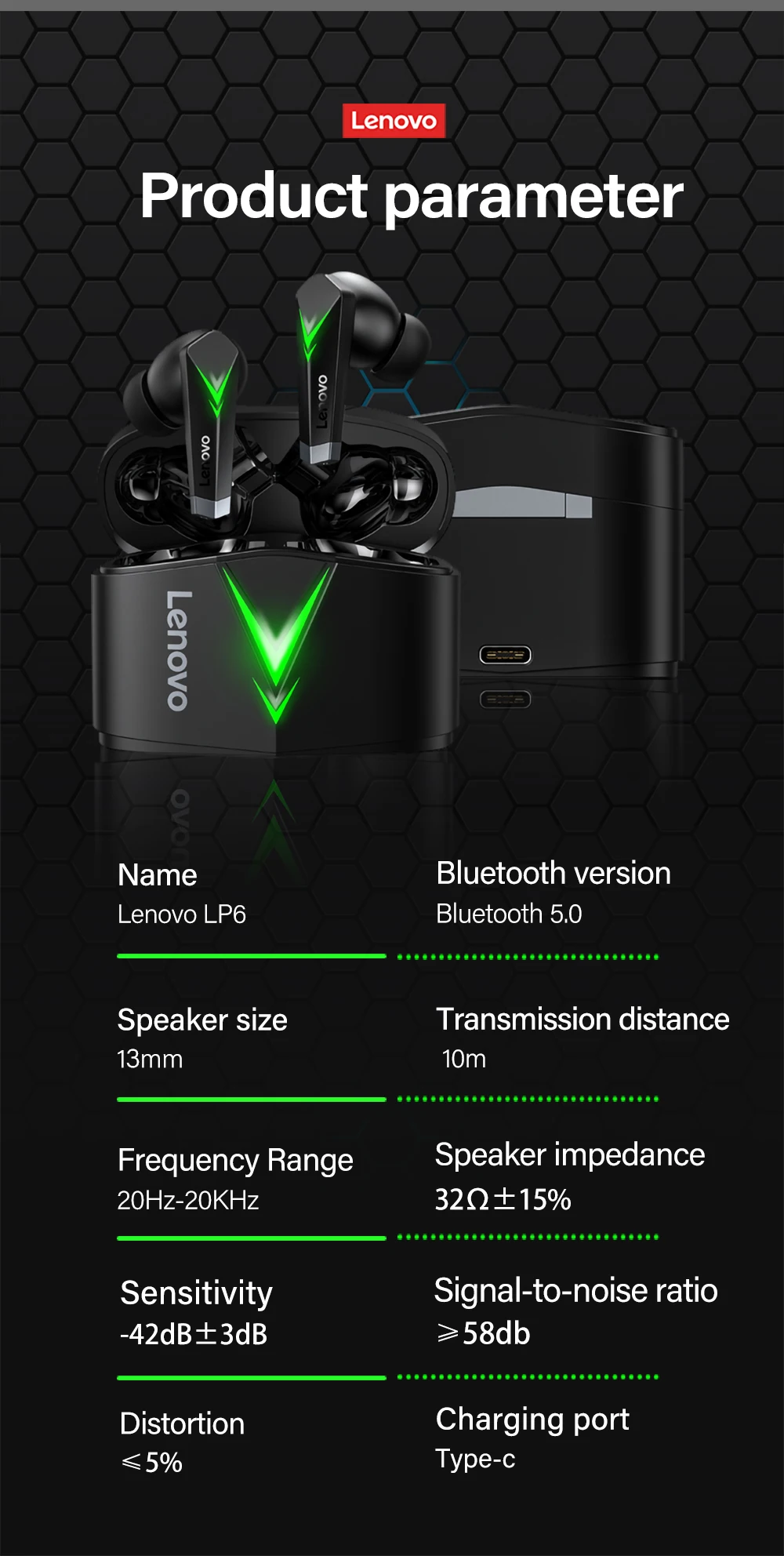 Игровая гарнитура Lenovo LP6, TWS Hi-Fi наушники с низкой задержкой...