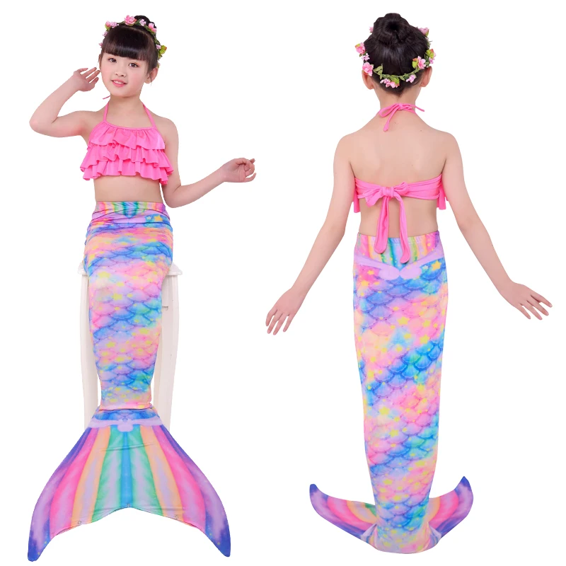 Купальный костюм с хвостом русалки для девочек, комплект для плаван...