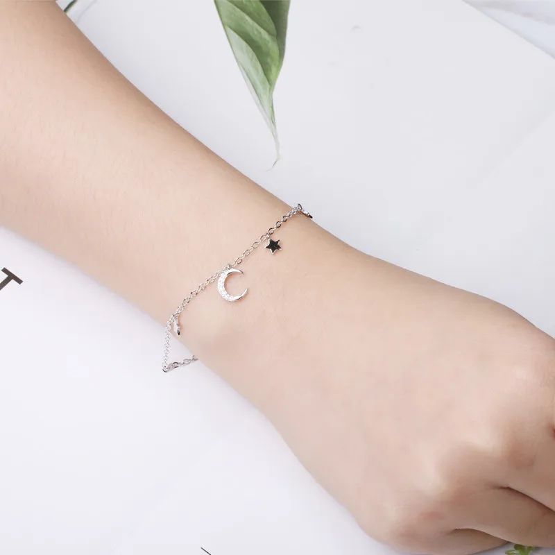 925 стерлингового серебра кисточкой Шарм с Луной и звездой и браслет для женщин и девочек SL351