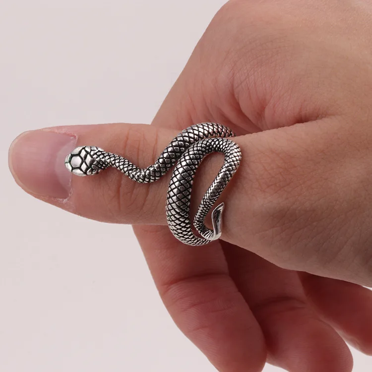 Винтажное кольцо унисекс, посеребренное кольцо в виде змеи с рисунк...