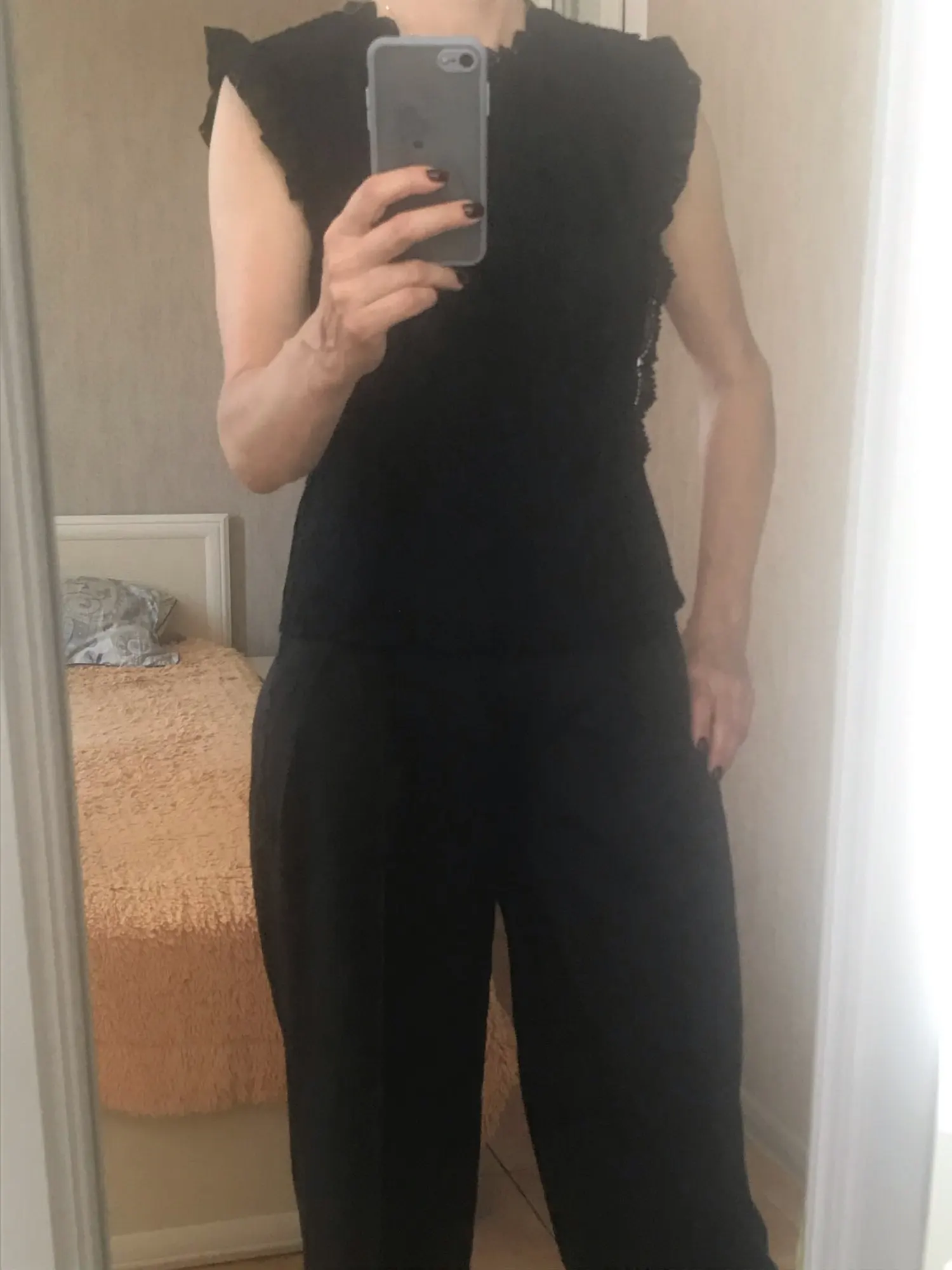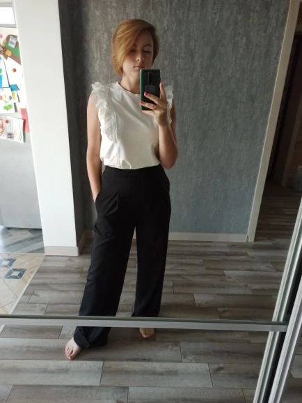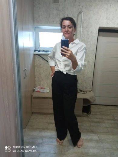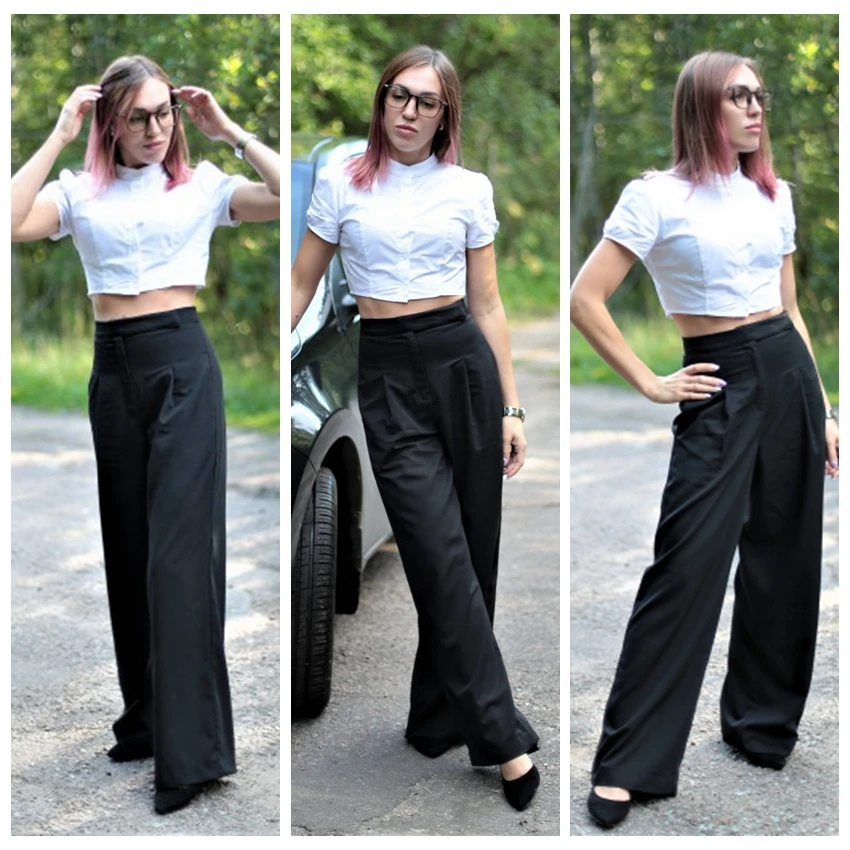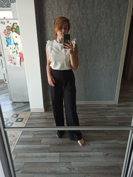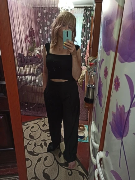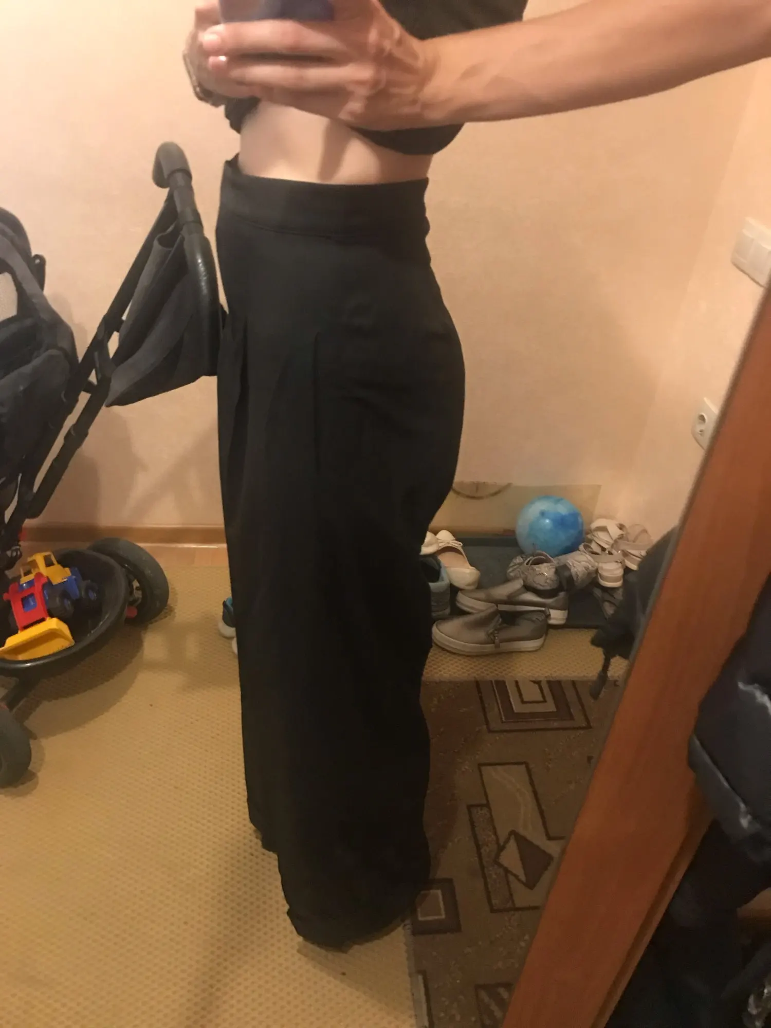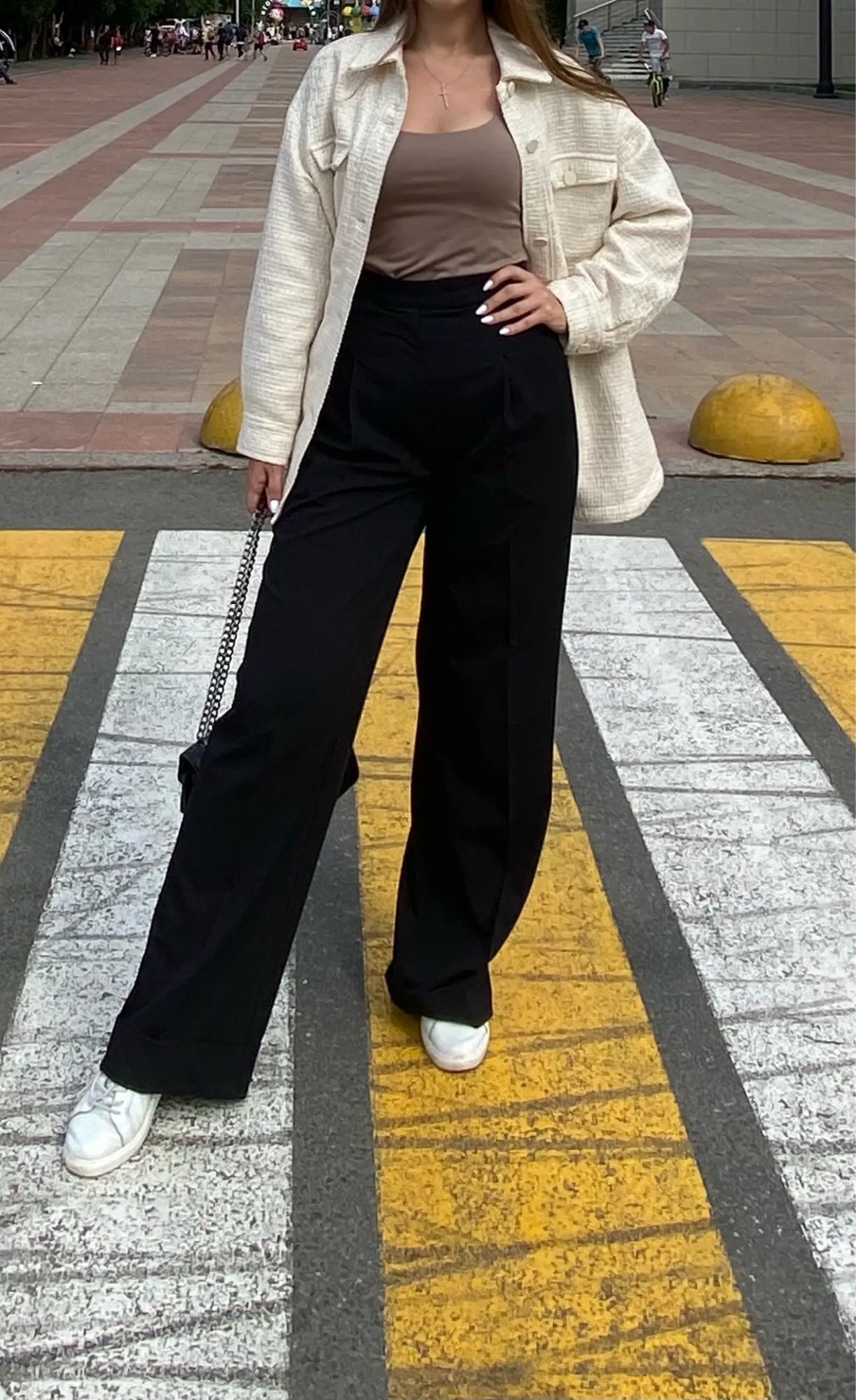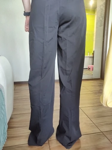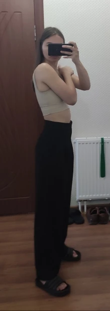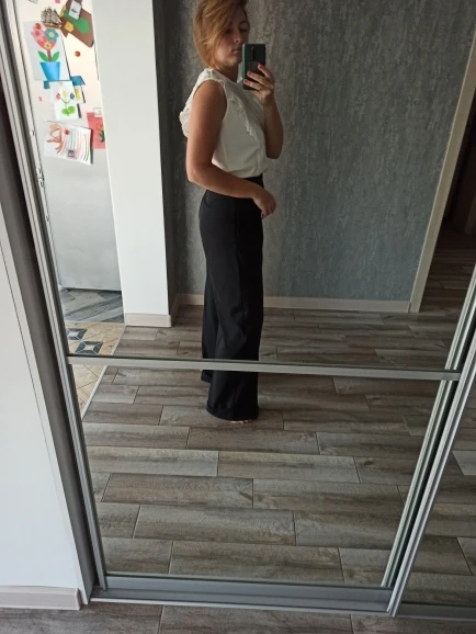 Наконец-то после долгих поисков я нашла идеальные брюки чёрного цвета на высоких девушек. На свои параметры ОТ- 63 см ОБ- 83 см, рост 167 см выбрала размер S. Брюки сели отлично, в талии не жмут и в бёдрах не перетягивают и не жмут. На мой рост длина идеальная, с каблуками даже не будут короткими. Брюки на девушек с высоким ростом!!! Брючки хоть и из тоненького материала, но не просвечивают и не электризуются, книзу слегка расклешенные. А спереди посередине просрочены будто имитация стрелок. Их можно сочетать сочетать с рубашками, свободными футболками, майками и в любом образе будут смотреться выигрышно! качество пошива отличное, швы все ровные, без перекосов и зазоров, торчащих ниток не было. Покупкой очень довольназа свою не высокую стоимость идеальное приобретение#алиэкспресс #aliexpress