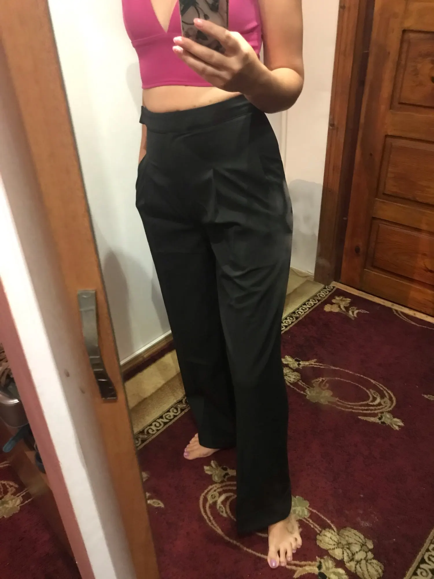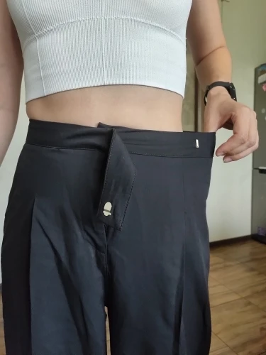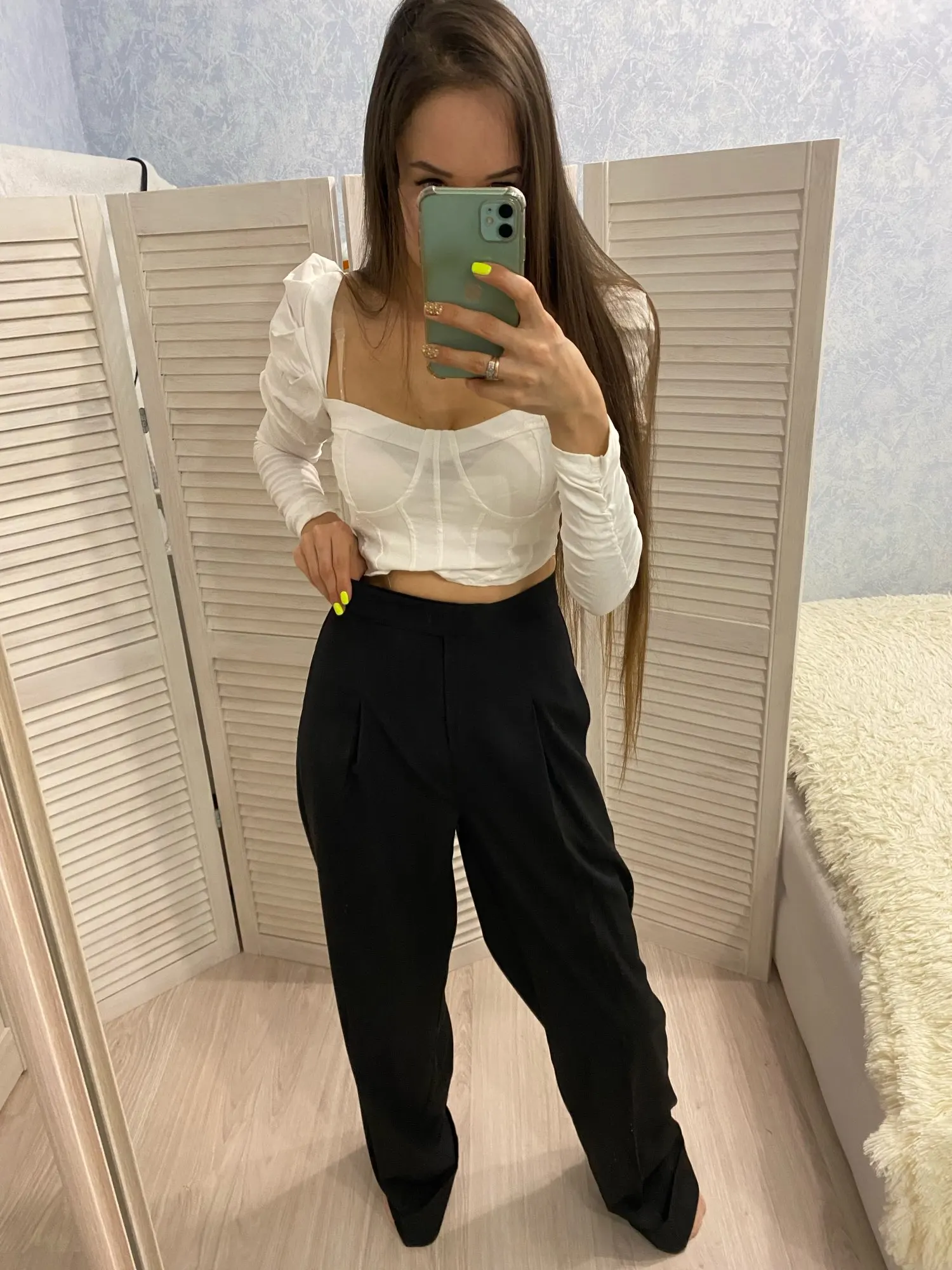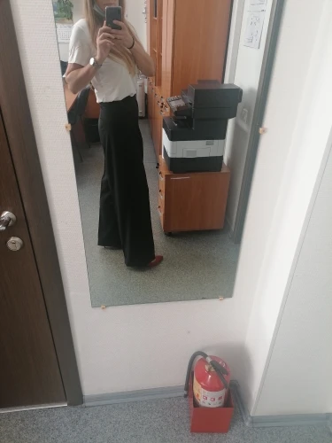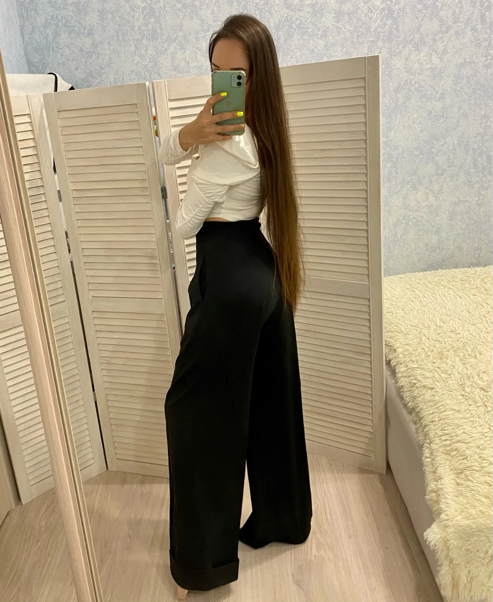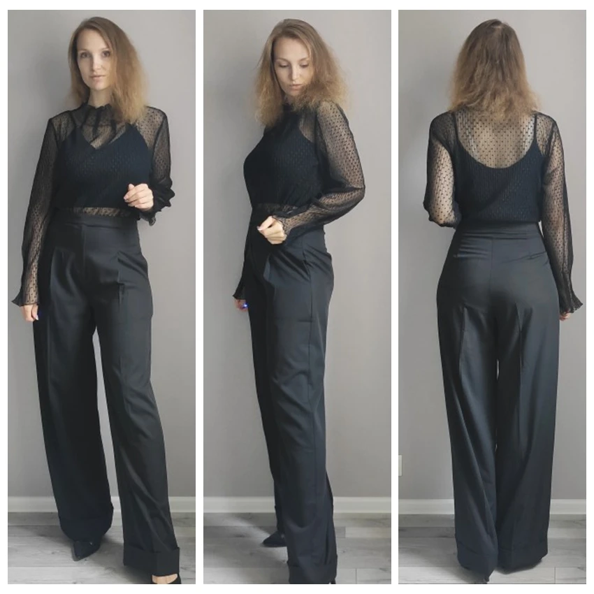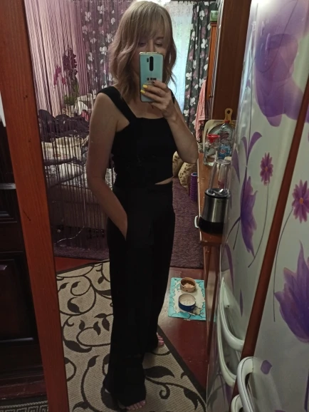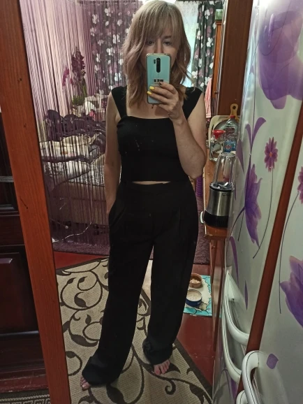 Наконец-то после долгих поисков я нашла идеальные брюки чёрного цвета на высоких девушек. На свои параметры ОТ- 63 см ОБ- 83 см, рост 167 см выбрала размер S. Брюки сели отлично, в талии не жмут и в бёдрах не перетягивают и не жмут. На мой рост длина идеальная, с каблуками даже не будут короткими. Брюки на девушек с высоким ростом!!! Брючки хоть и из тоненького материала, но не просвечивают и не электризуются, книзу слегка расклешенные. А спереди посередине просрочены будто имитация стрелок. Их можно сочетать сочетать с рубашками, свободными футболками, майками и в любом образе будут смотреться выигрышно! качество пошива отличное, швы все ровные, без перекосов и зазоров, торчащих ниток не было. Покупкой очень довольназа свою не высокую стоимость идеальное приобретение#алиэкспресс #aliexpress