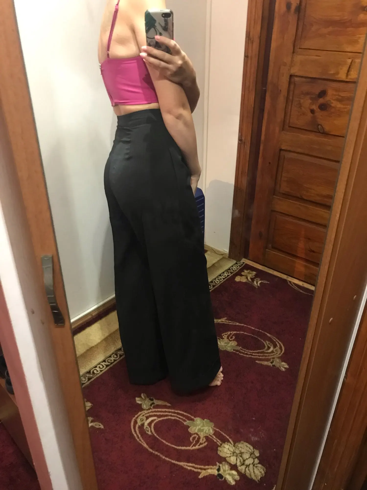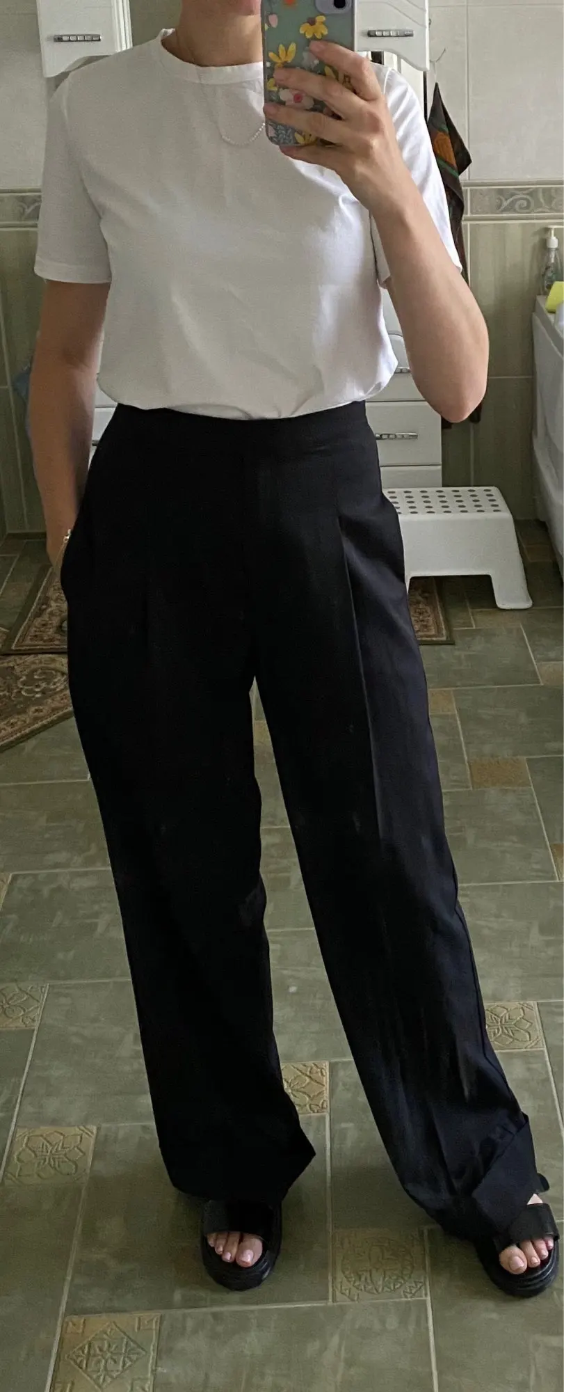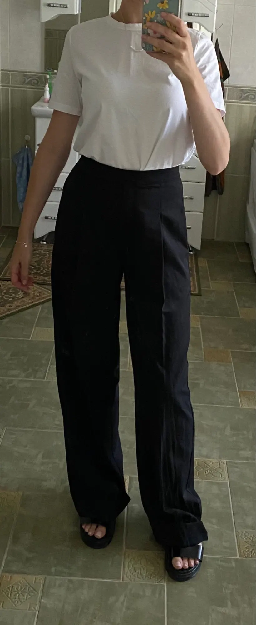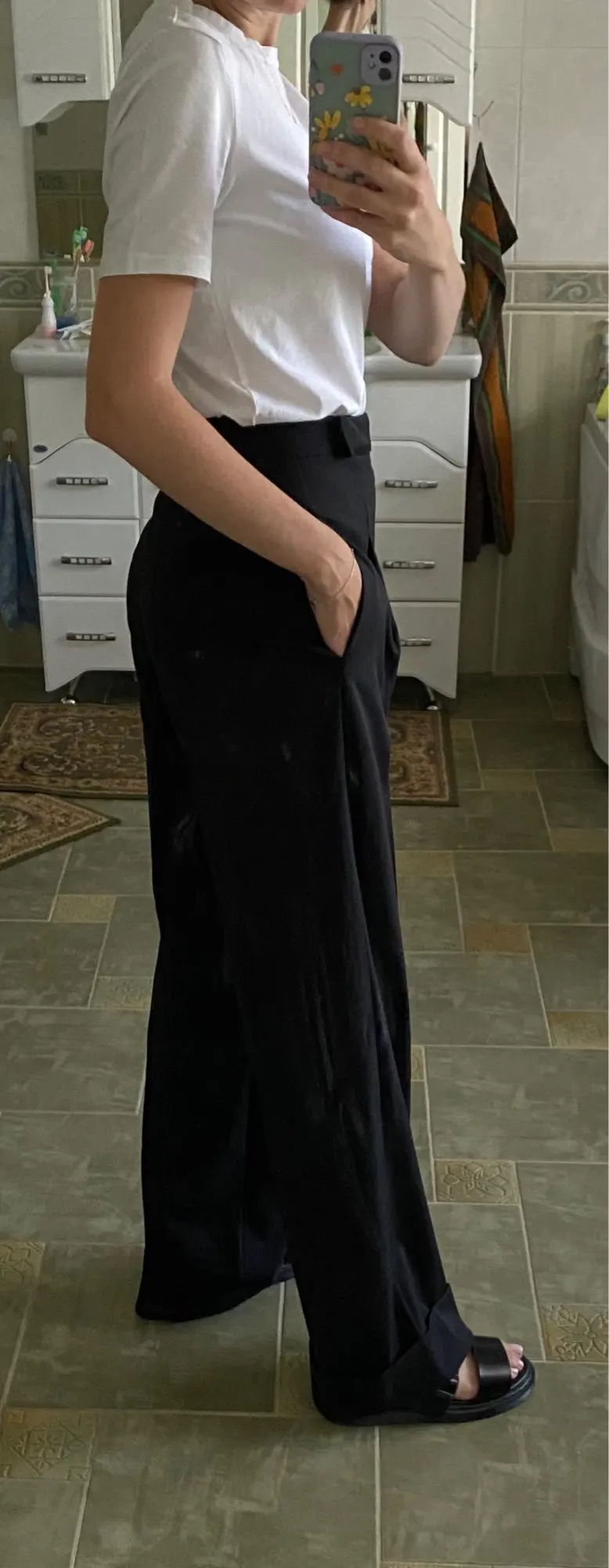 Бомбезные брюки! Круто смотрятся с сандалиями и ботинками Аля Мартинс. Ткань дорогая, тонкая, очень приятная к телу. В составе будто вискоза. Крой и качество исполнения изумительные! На рост 172 и талия 68, бёдра 92 взяла М, сидит немного свободно. Лучше бы сел S, тогда бы смотрелось ещё круче. Спасибо большое @solnceva.liza за обзор на них!