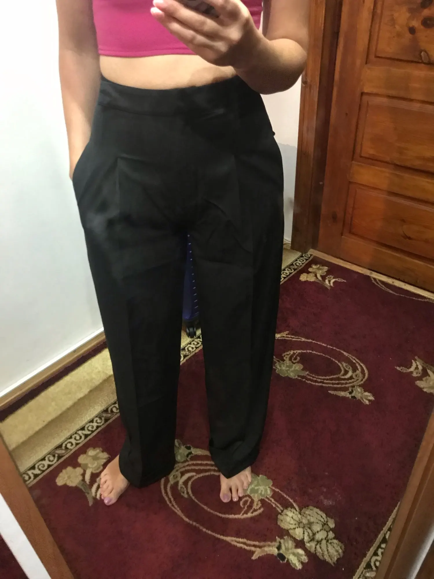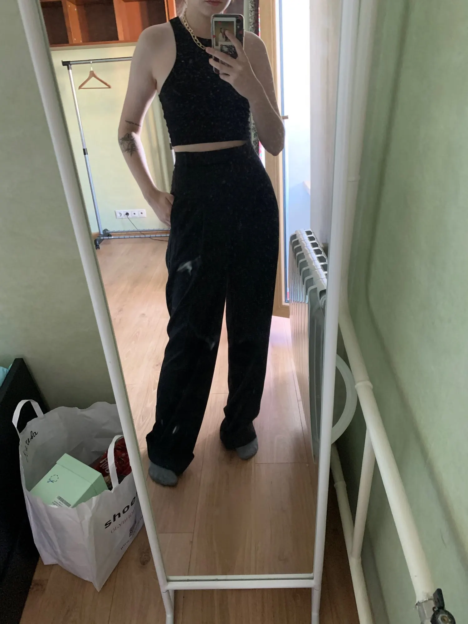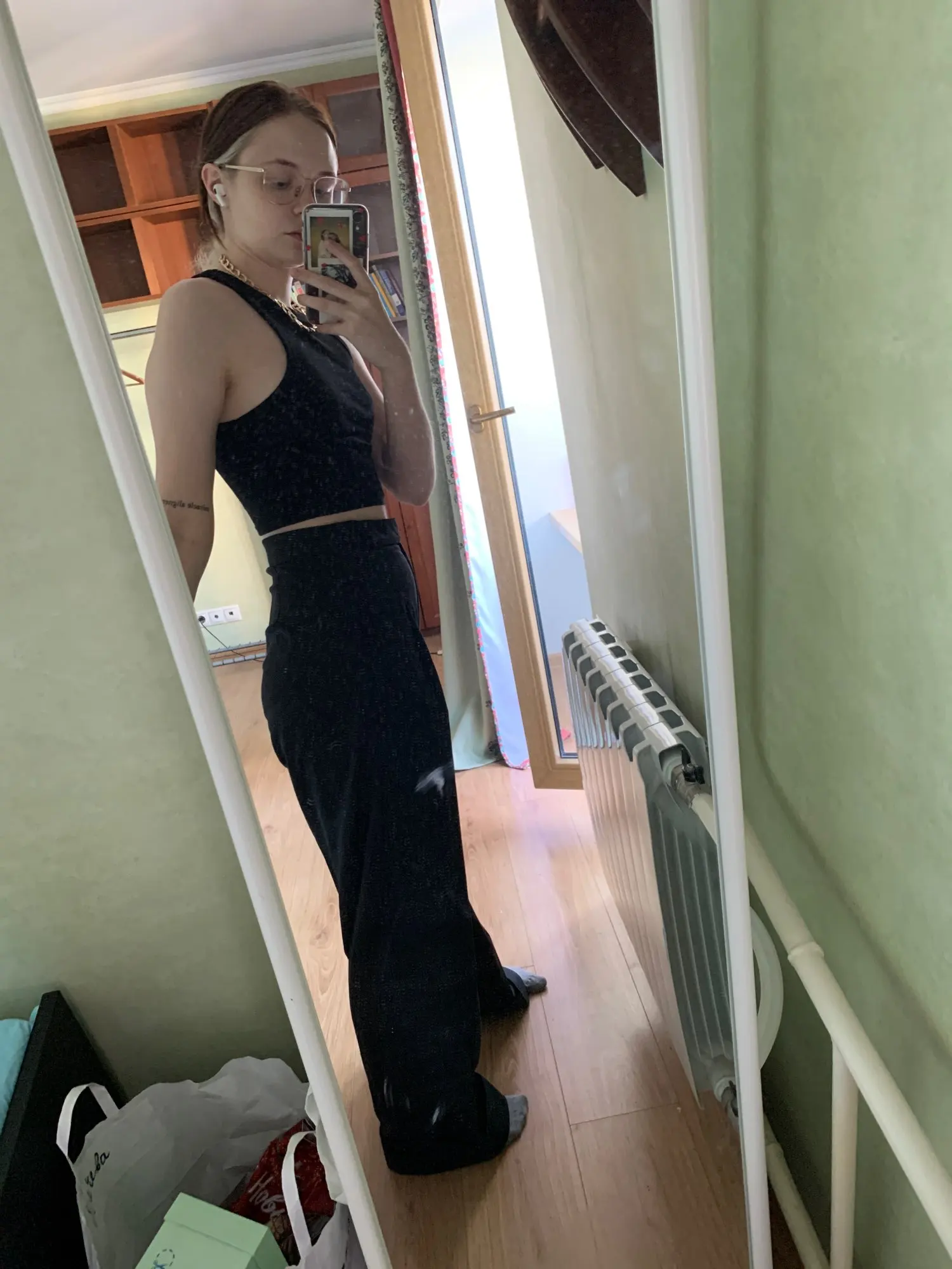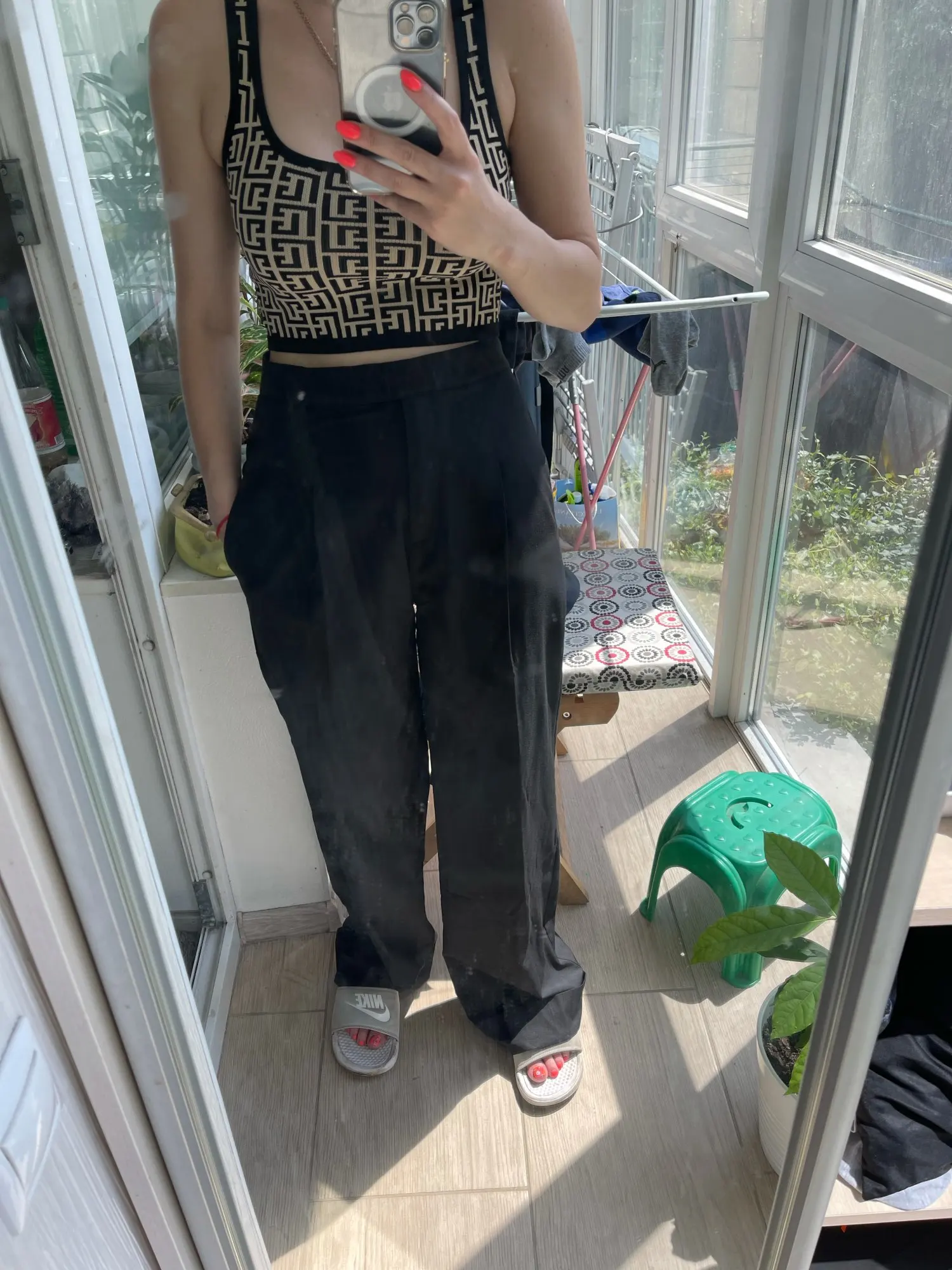 Бомбезные брюки! Круто смотрятся с сандалиями и ботинками Аля Мартинс. Ткань дорогая, тонкая, очень приятная к телу. В составе будто вискоза. Крой и качество исполнения изумительные! На рост 172 и талия 68, бёдра 92 взяла М, сидит немного свободно. Лучше бы сел S, тогда бы смотрелось ещё круче. Спасибо большое @solnceva.liza за обзор на них!