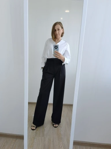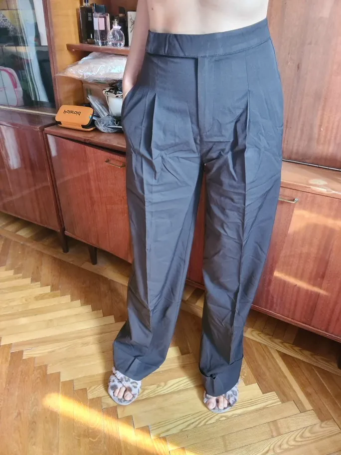 Очень хорошие брюки, особенно за такую цену. Пришли быстро. Всё прошито очень аккуратно, нет ниток и запаха. Очень советую высоких девушкам. Я 180см и для меня всегда проблема найти брюки, которые будут не по коленку)) Они довольно длинные, внизу подвороты. Но просто распороть и удлинить их не получится, потому что этот загиб подворота пришит отдельно. То есть если вы их распорете, то будет виден шов(( Мне и так хватает такой длинны на мой рост, но будет хорошо, если вы будете знать про это при покупке.