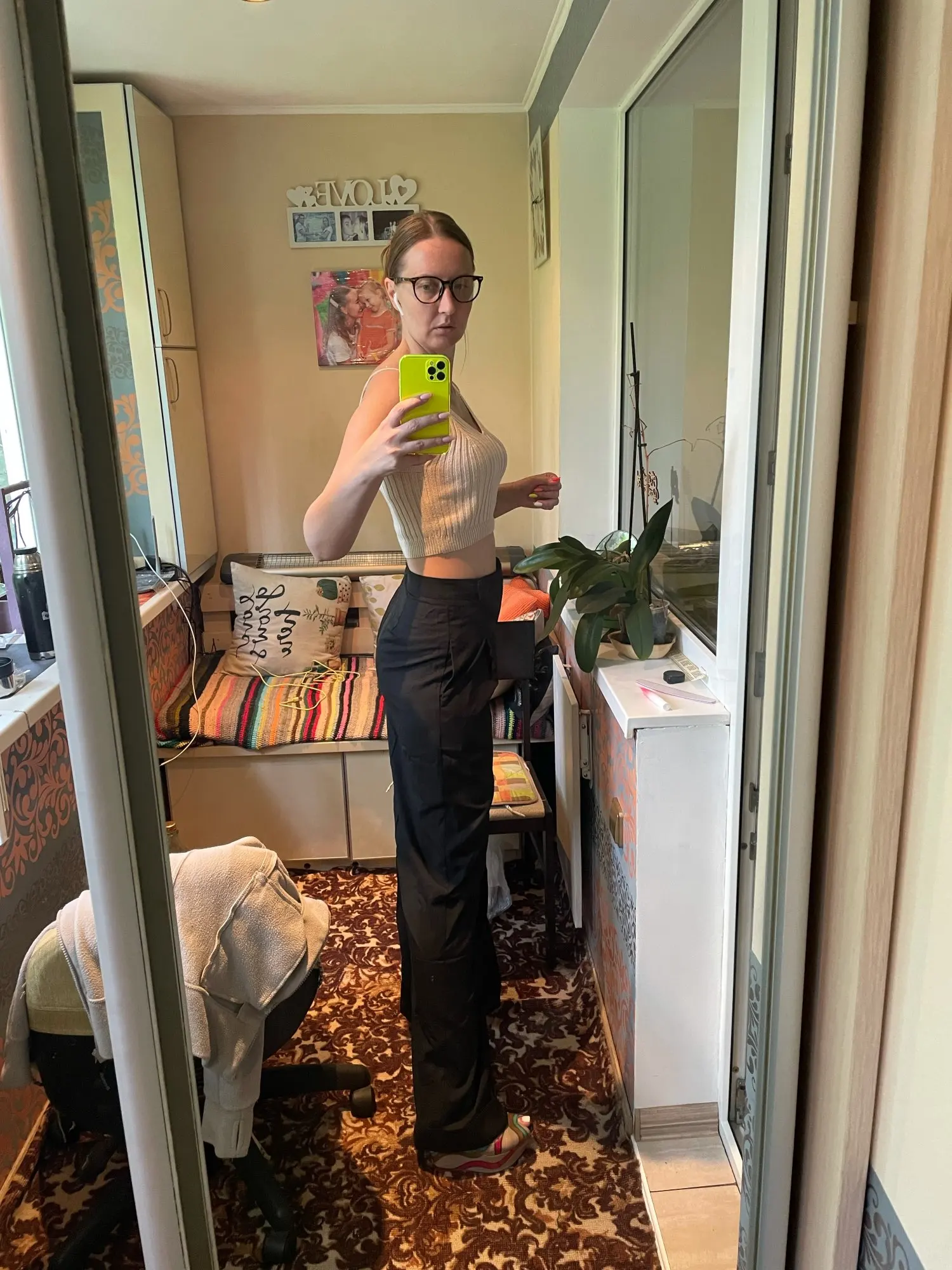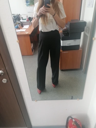 Брюки бомба. За такую цену - идеально. Когда увидела какие они узкие в талии - думала не влезу. Но нет, все прекрасно, сидят идеально. Единственное, придётся укорачивать. На рост 173 сантиметра 4 ниже пят. Я впервые встречаю, чтоб мне были длинные брюки )) обычно другая проблема.