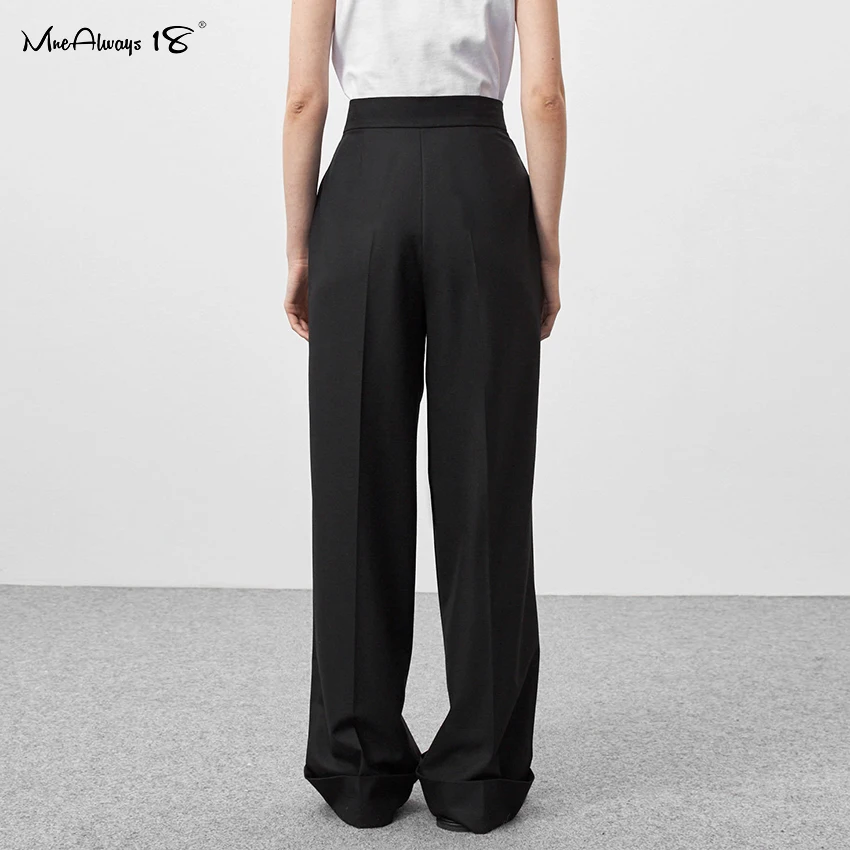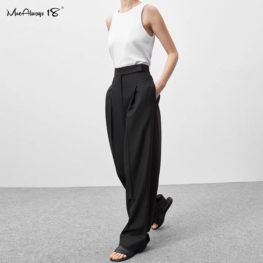 Mnealways 18 весенне-Летние черные женские офисные брюки женские брюки с высокой талией женские плиссированные Широкие штаны однотонные 2022