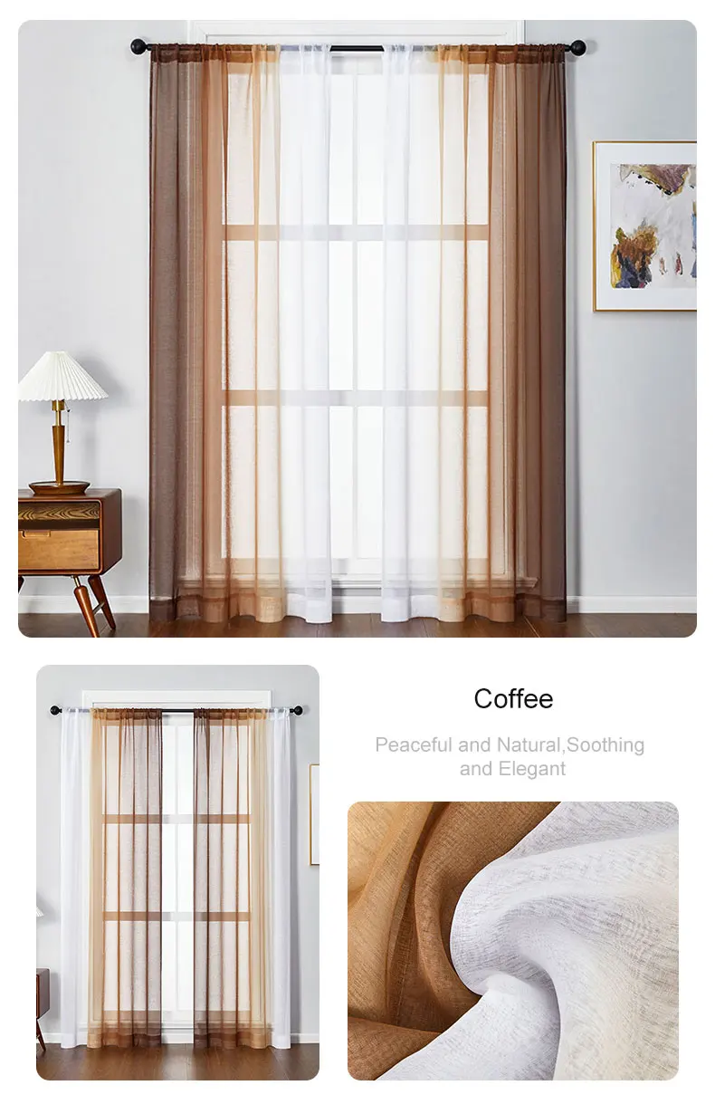 Тюлевые шторы TPS кофейного цвета с градиентом, шторы для гостиной,...