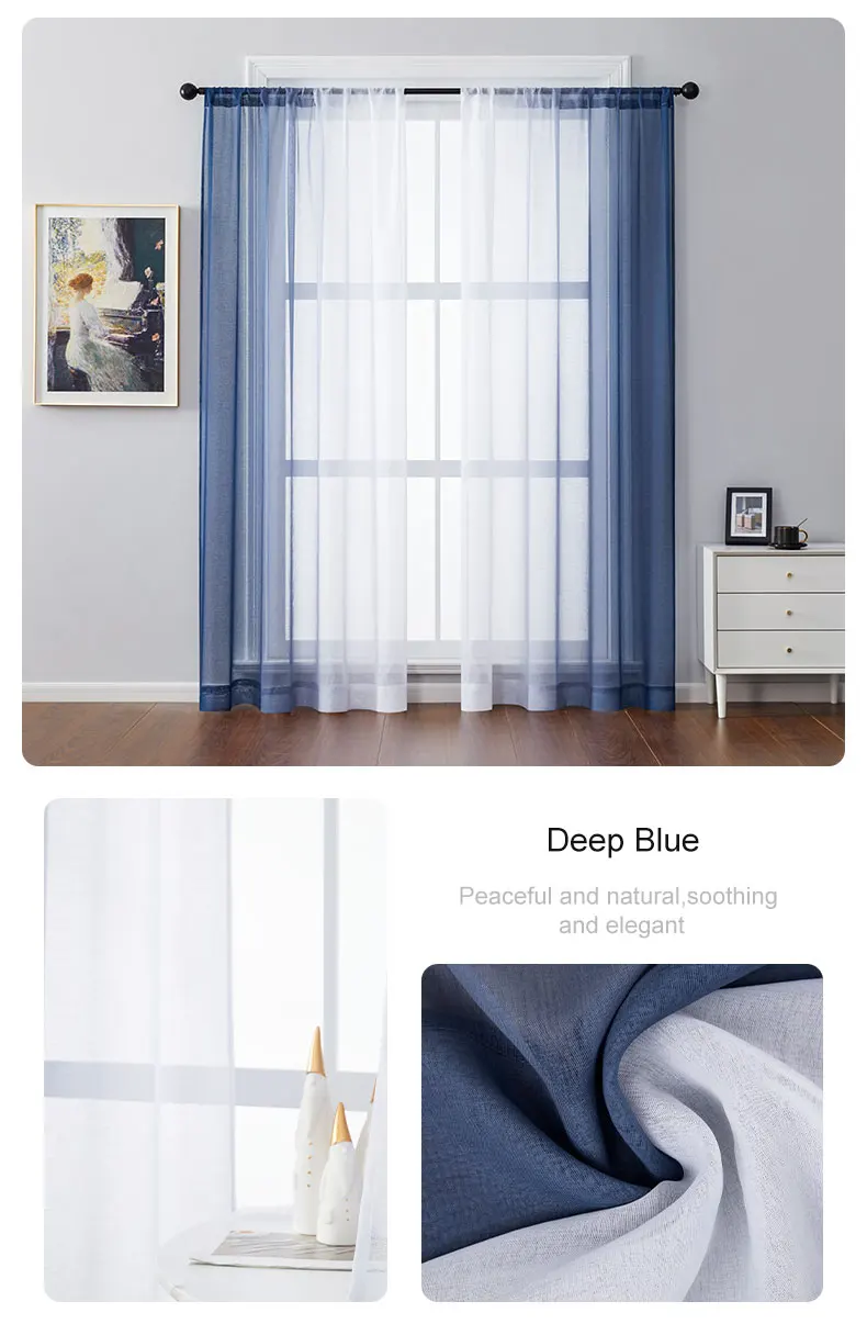 DK занавески из голубого тюля с градиентом, для гостиной, спальни, ...