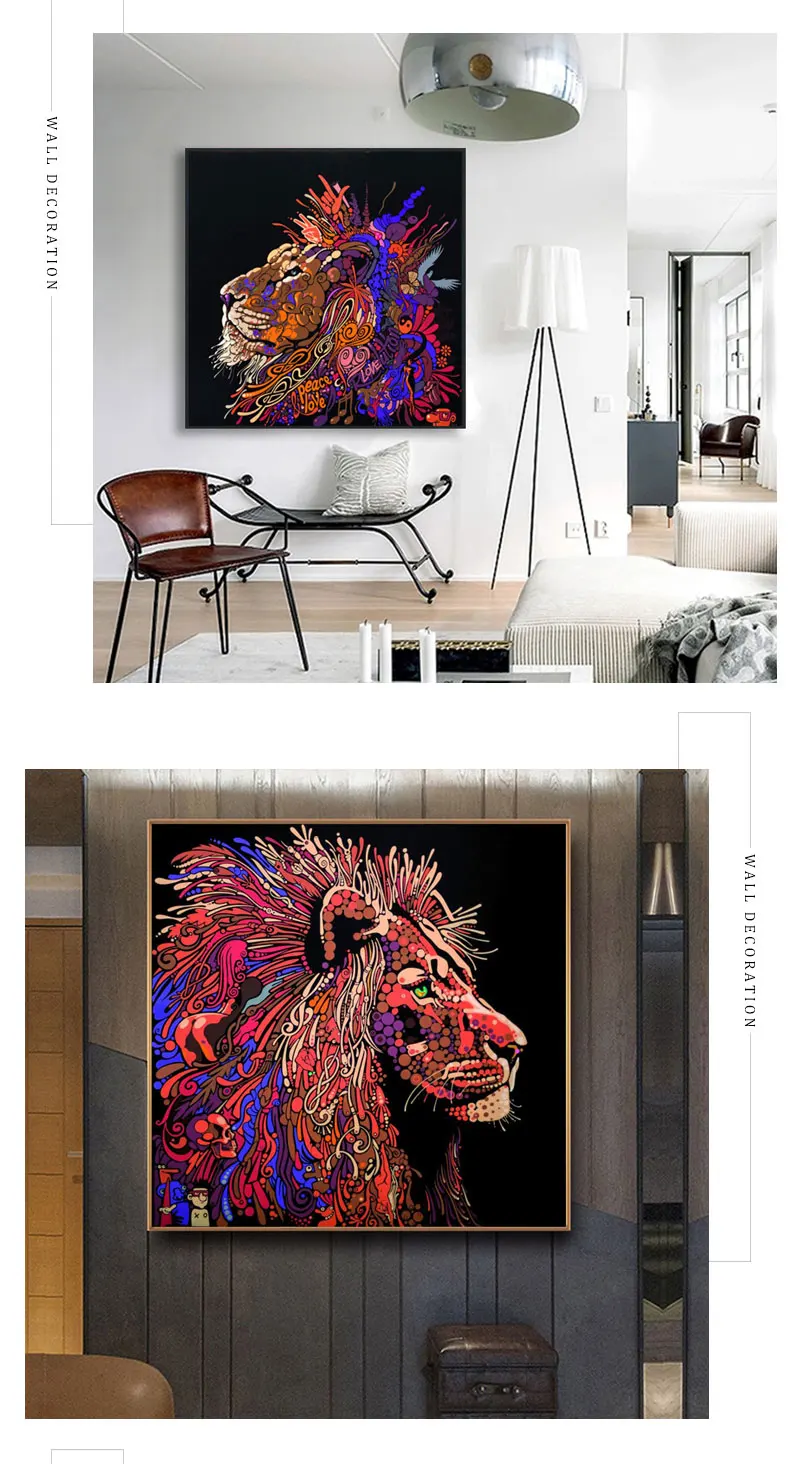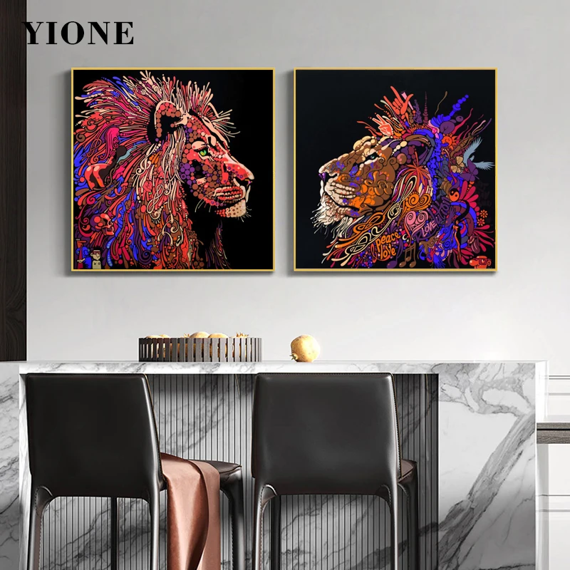 Креативная пара Львы парусиновая обувь Картины Африка животного мира любовь фоторамка настенные художественные плакаты и принты Гостиная прохода украшения