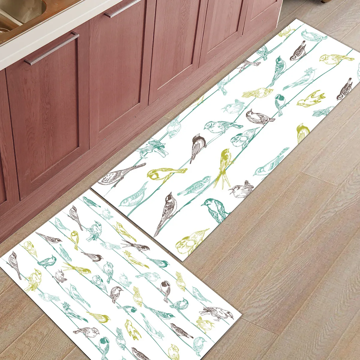 Коврик для кухни в стиле ретро, противоскользящий, с красными птица...