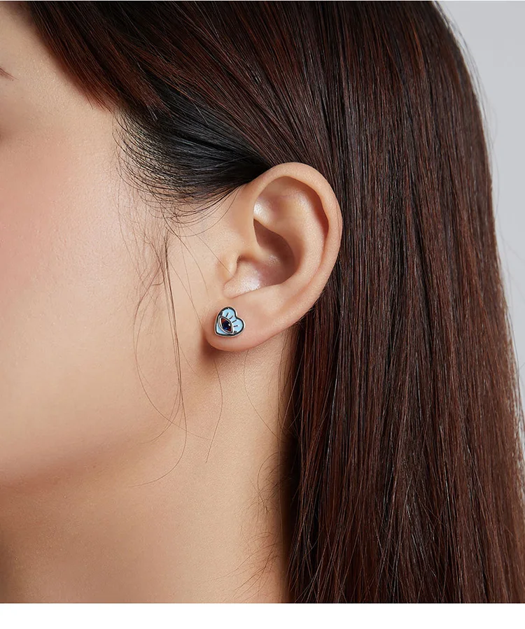 Женские серьги-гвоздики в форме сердца, из серебра 925 пробы