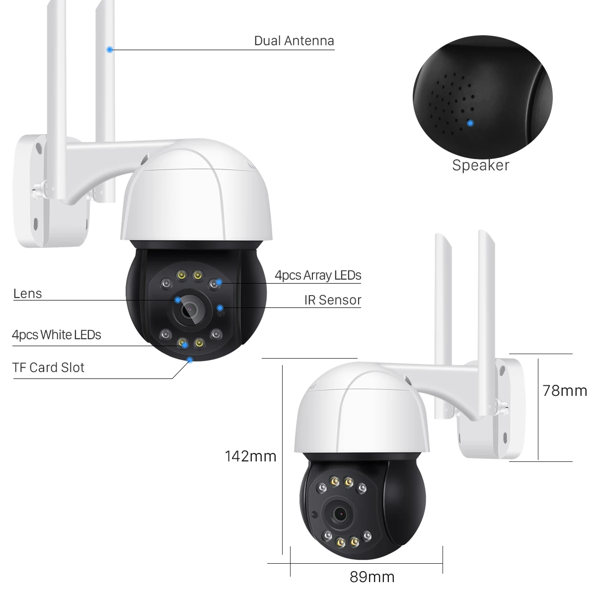 5MP 3MP WiFi IP-камера 1080P PTZ беспроводное обнаружение движения аудио полноцветный инфракрасный ночной Onvif CCTV охранное наблюдение