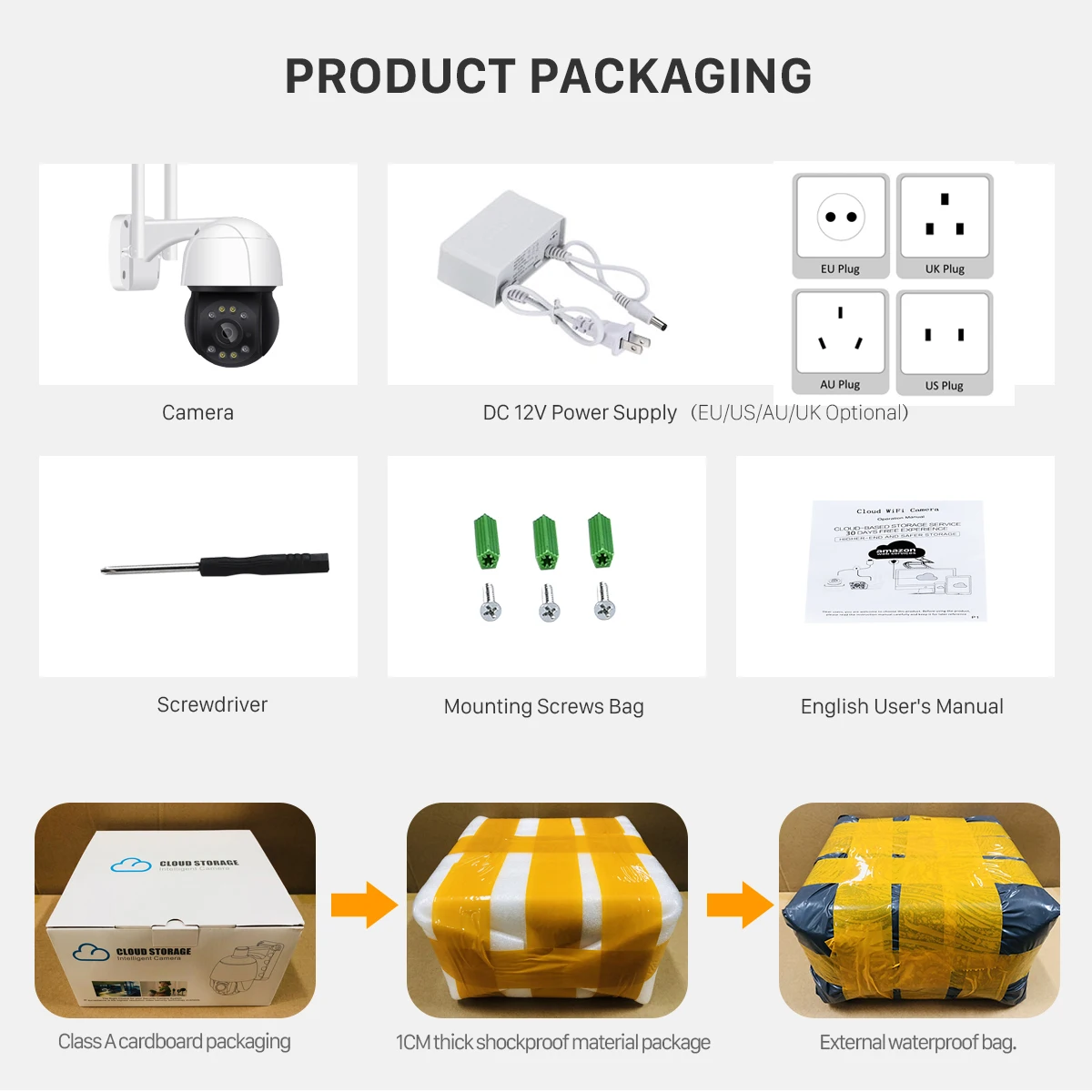 Интеллектуальная функция обнаружения человеческого тела, push alarm to APP, поддержка функции автоматического отслеживания и автоматической записи, которую можно легко установить в приложении