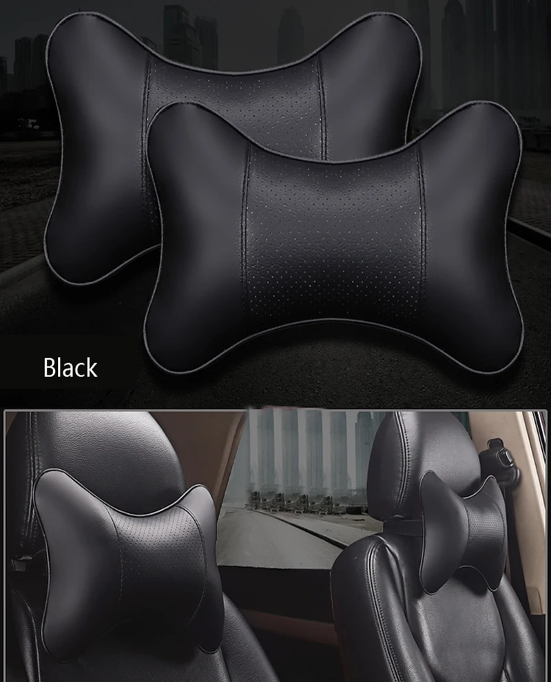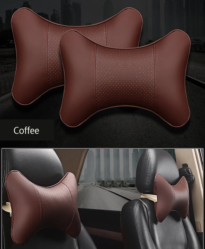 Автомобильные подушки для шеи из искусственной кожи, защита для головы, черныйкофейный цвет, легкая установка и чистка, универсальная подушка для подголовника спинки