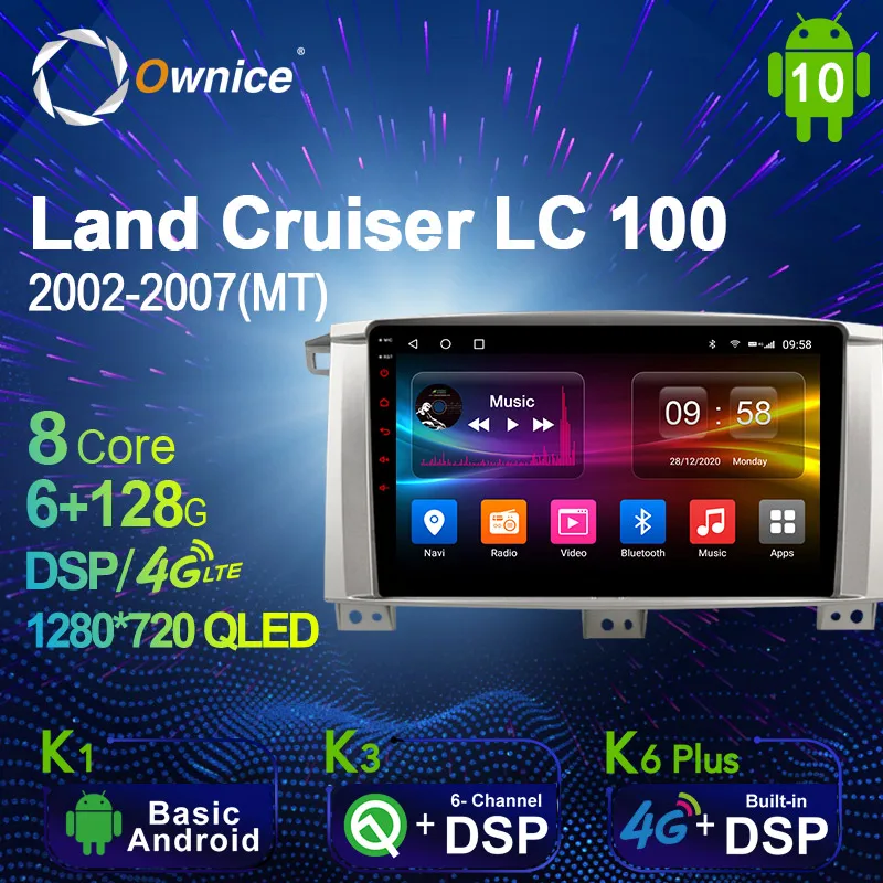 Android 10,0 6G + 128G Автомагнитола стерео для Toyota Land Cruiser LC 100 2002-2007 Авто аудио GPS 4G LTE Система головное устройство 1280*720