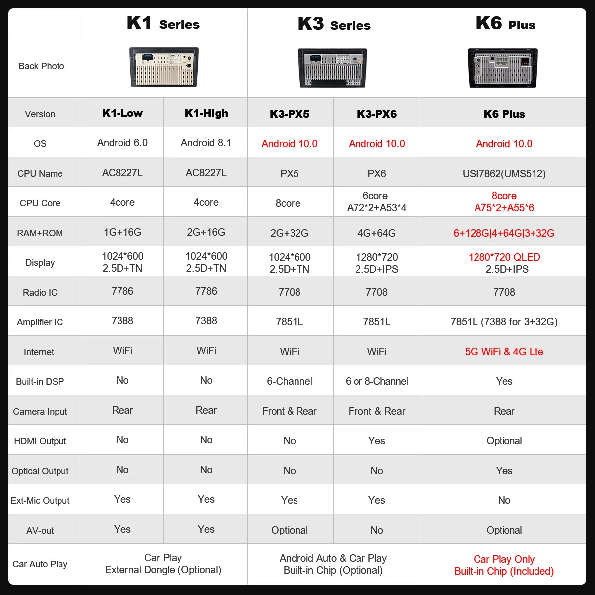 K6 Plus 128G ---UIS7862| Android 10,0 |8 ядер (A75 * 2 + A55 * 6) | 6G + 128G | 2.5D + IPSQLED 1280*720 | Радио 7708 | Усилитель 7851L