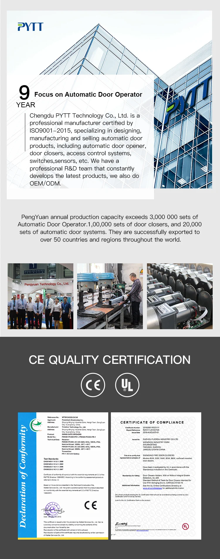 1. На любые запросы будет дан ответ в течение 24 часов, мы наклоняемся в автоматическую дверь более 10 лет.2. Профессиональный поставщик автоматических решений для дверей.3. OEM доступны:1) индивидуальный логотип или цветная коробка2) Любая ваша идея на автоматической двери, мы можем выполнить и положить его в производство.4. Высокое качество, модная ведущая, разумная и конкурентоспособная цена.5. Послепродажное обслуживание:1) все продукты проходят строгую проверку качества на нашей фабрике перед упаковкой, у нас есть опытная команда контроля качества, которая отвечает за проверку качества перед отправкой.2) Все продукты будут хорошо упакованы перед отправкой.3) Все наши продукты имеют 1 год гарантии, и мы уверены, что наши продукты будут свободны от обслуживания в течение гарантийного срока в целом.6. В наличии, быстрая доставка.