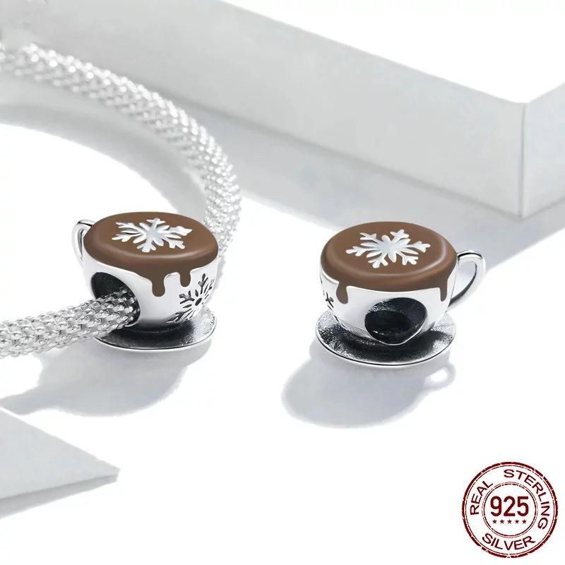 Натуральная 925 пробы серебро кофе чашки узор Буле Глаза лисы ажурные бусины, подходят к оригиналу Pandora, браслет, ювелирное изделие, подарок