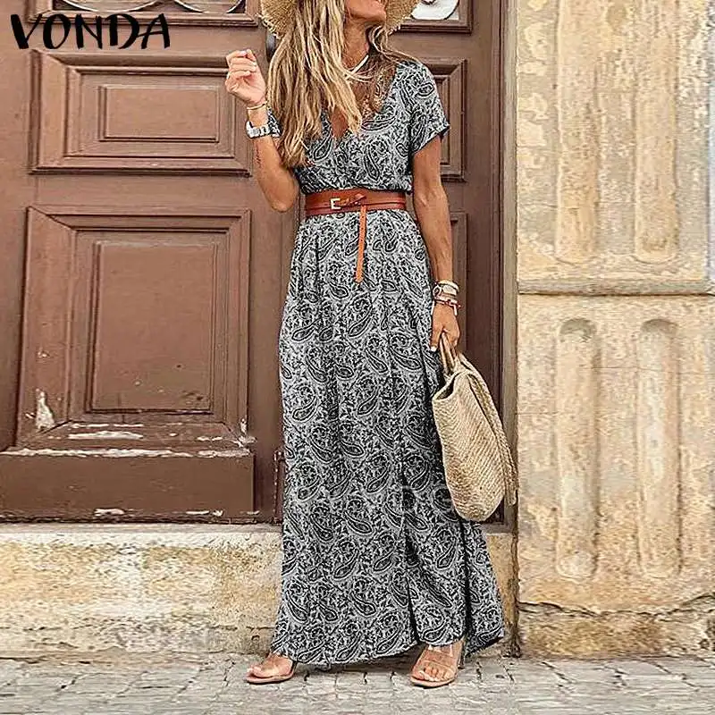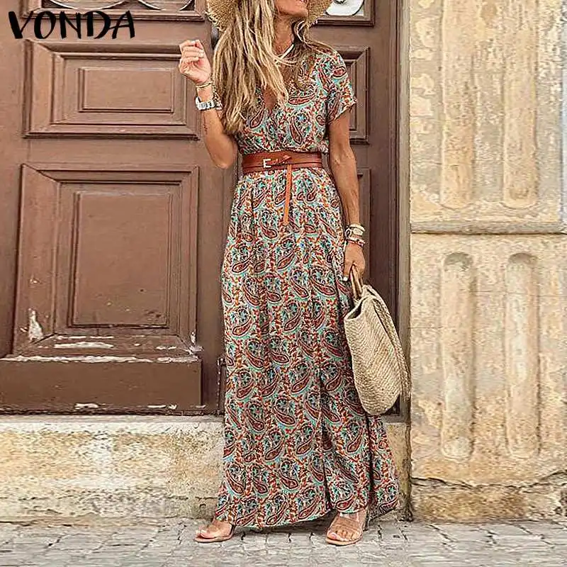 Богемное платье 2022 VONDA, женское длинное платье для вечевечерние...