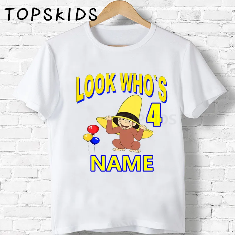 Оригинальное имя Любопытный Джордж День Рождения мультфильм детская футболка для мальчиков обезьяна номер 1 10 смешные футболки Одежда для девочек HKP2462
