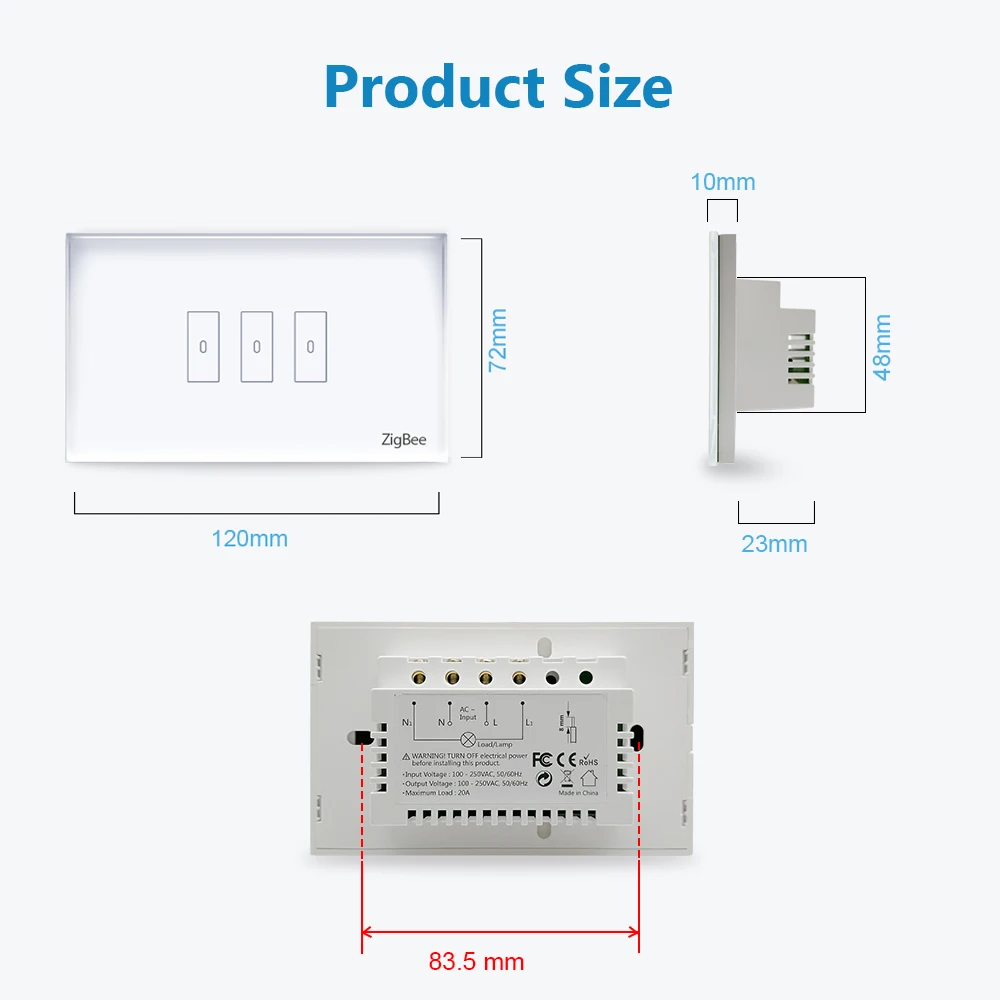 Вход Напряжение: 100-250VAC В переменного тока, 50/60 ГцВыходное напряжение: 100-250VAC В переменного тока, 50/60 ГцМаксимальная нагрузка: 5A(1100 Вт)/бандаНазвание приложения: Smart Life, Tuya AppГолосовое управление: Google Assistant, Amazon AlexaБеспроводной протокол: Tuya ZigBee 3,0Размеры переключателя: 120 мм * 72 мм * 35 ммПластиковый материал: огнеупорный АБС-пластикСертификация: CE, RED, EMC, RoHSПроизведено ISO9001:2015 Завод: ДаЗапатентованный продукт: Да