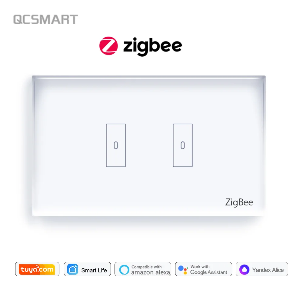 Tuya Smart LIfe ZigBee 3,0 США Белый 2 Ган Сенсорный Панель светильник переключатель приложение Дистанционное Управление таймер Google Home Alexa Acho Голос работать