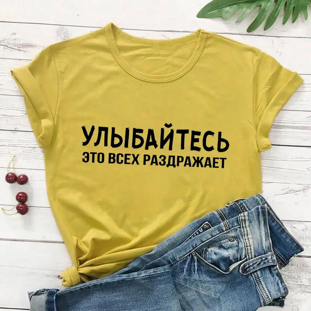 Улыбка раздражает каждый русской кириллицей 100% хлопок женские фут...
