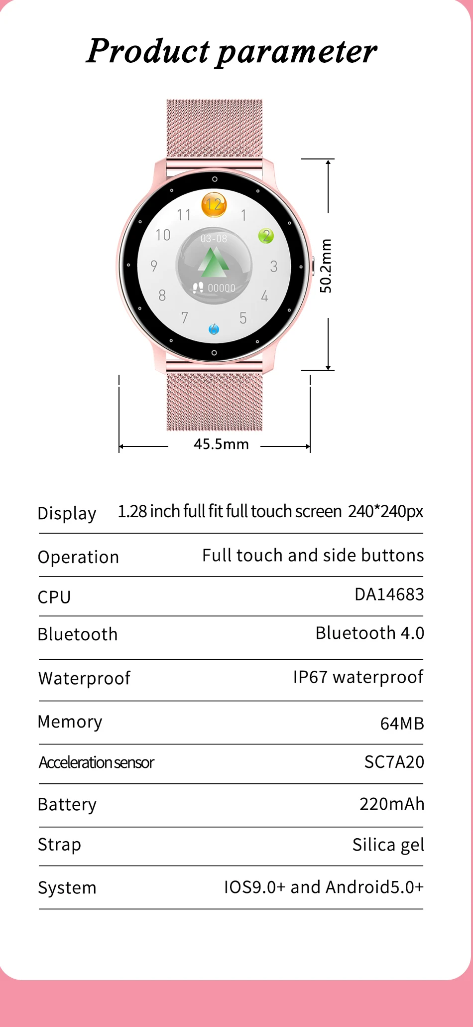 LIGE Смарт часы для женщин фитнес отслеживания сердечного ритма крови Давление полный сенсорный Экран Водонепроницаемый часы спортивные женские умные часы для детей
