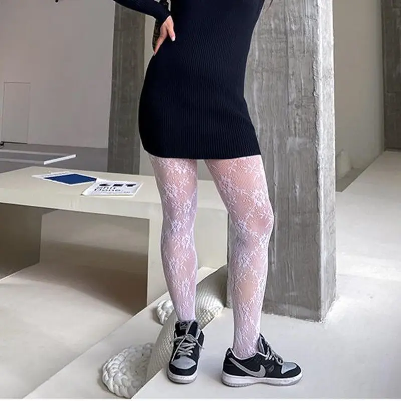 Сексуальные ажурные чулки, колготки с фатиновой юбкой и рисунком шелковые чулки, фиксирующиеся на бедрах, кружевные колготки с татуировками размера плюс черный, белый цвет Для женщин Свободные колготки